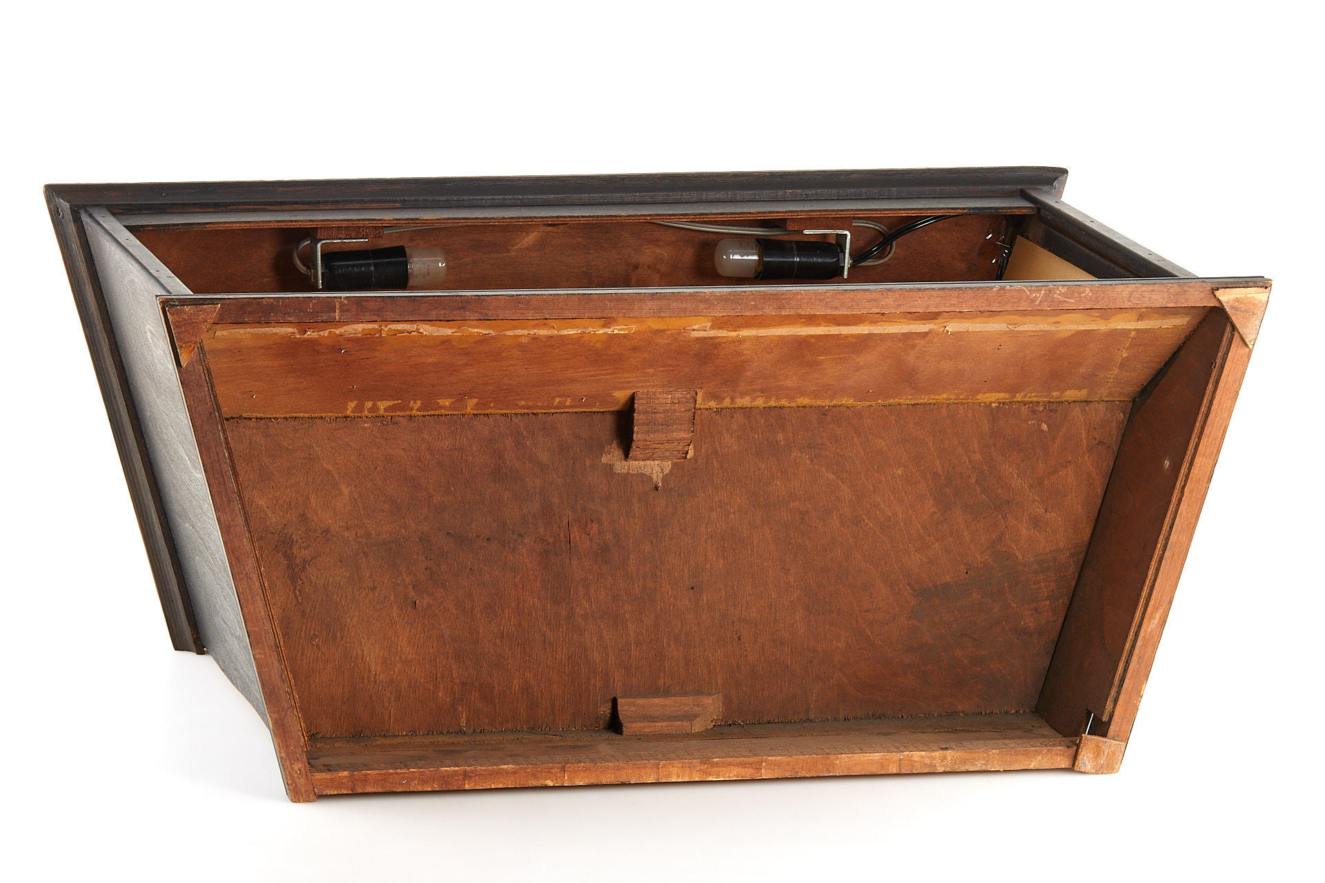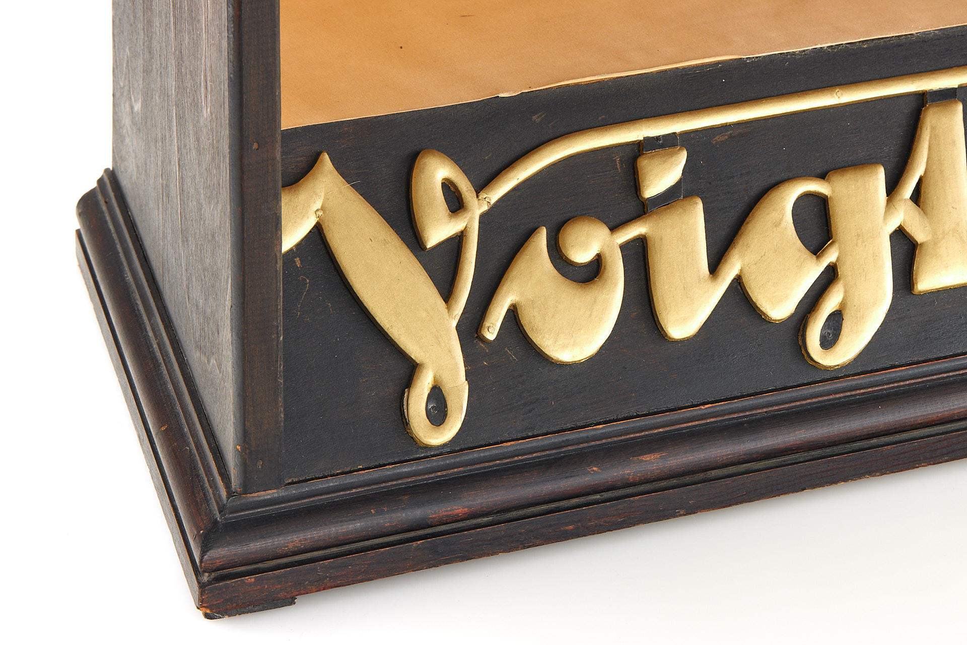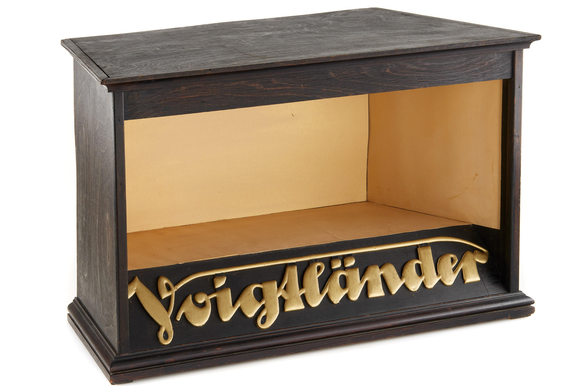 A beautiful, large illuminated display stand, c.70x32x42cm, in excellent condition, new cable for the light installed, one of the most attractive advertising items from Voigtländer we have seen