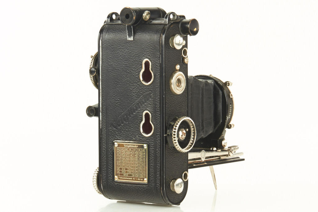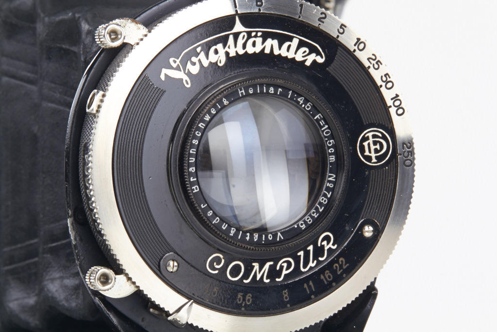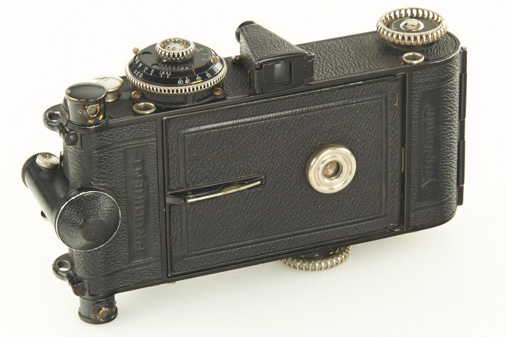 for 6x9cm exposures on rollfilm, in fine condition with Heliar 4.5/10.5cm no.787385 in good working Compur shutter, original strap and case, the Prominent was the first camera with a built-in light meter
