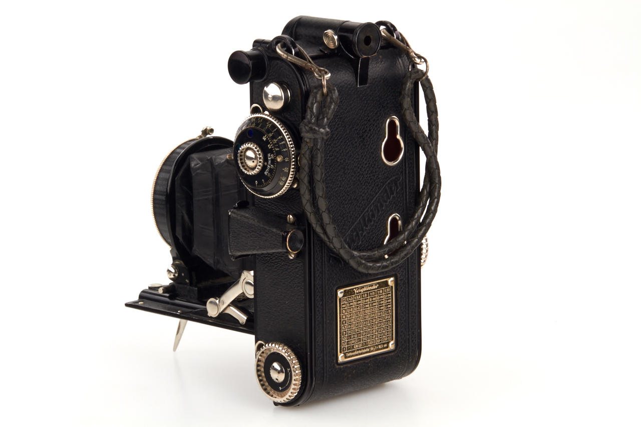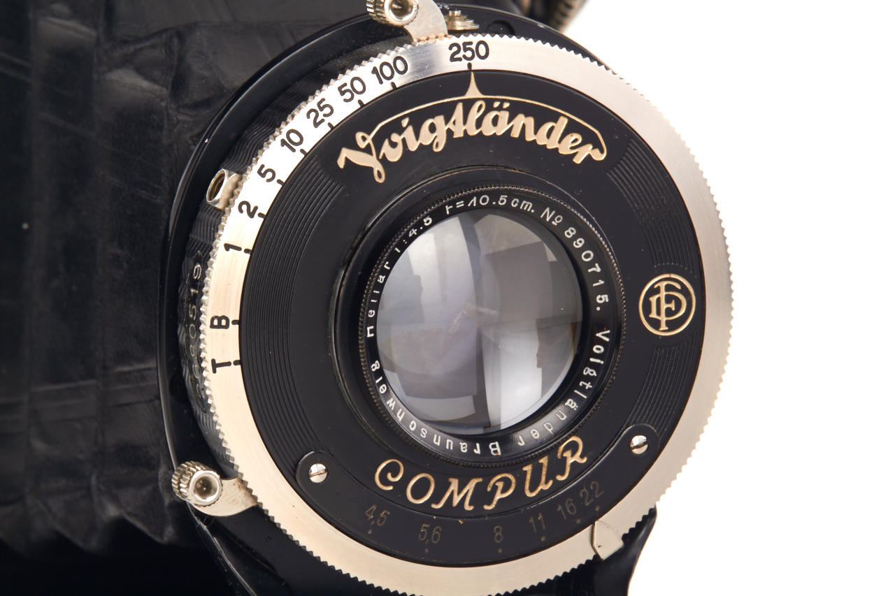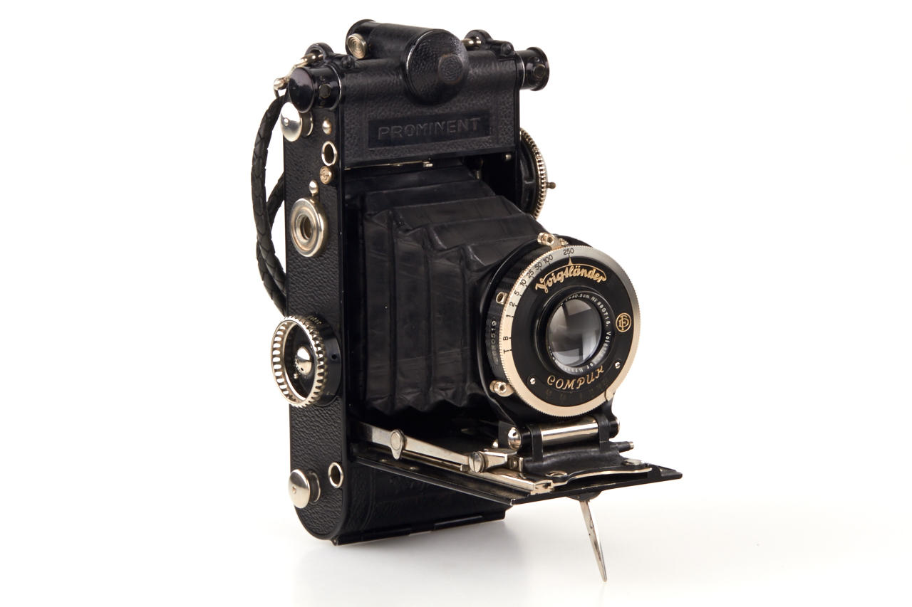 uncommon 6x9cm folding camera for 120 film, in beautiful near mint original condition, Heliar 4.5/10.5cm no.890715 in Compur shutter, with leather case