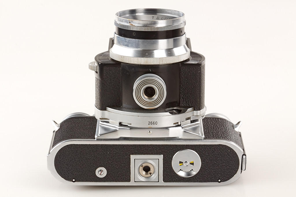 camera in good working order with rare Super-Dynaron 4.5/150mm no.4676923 and Telomar 5.5/100mm no.3536070 in reflex housing no.2660 (cond. B)