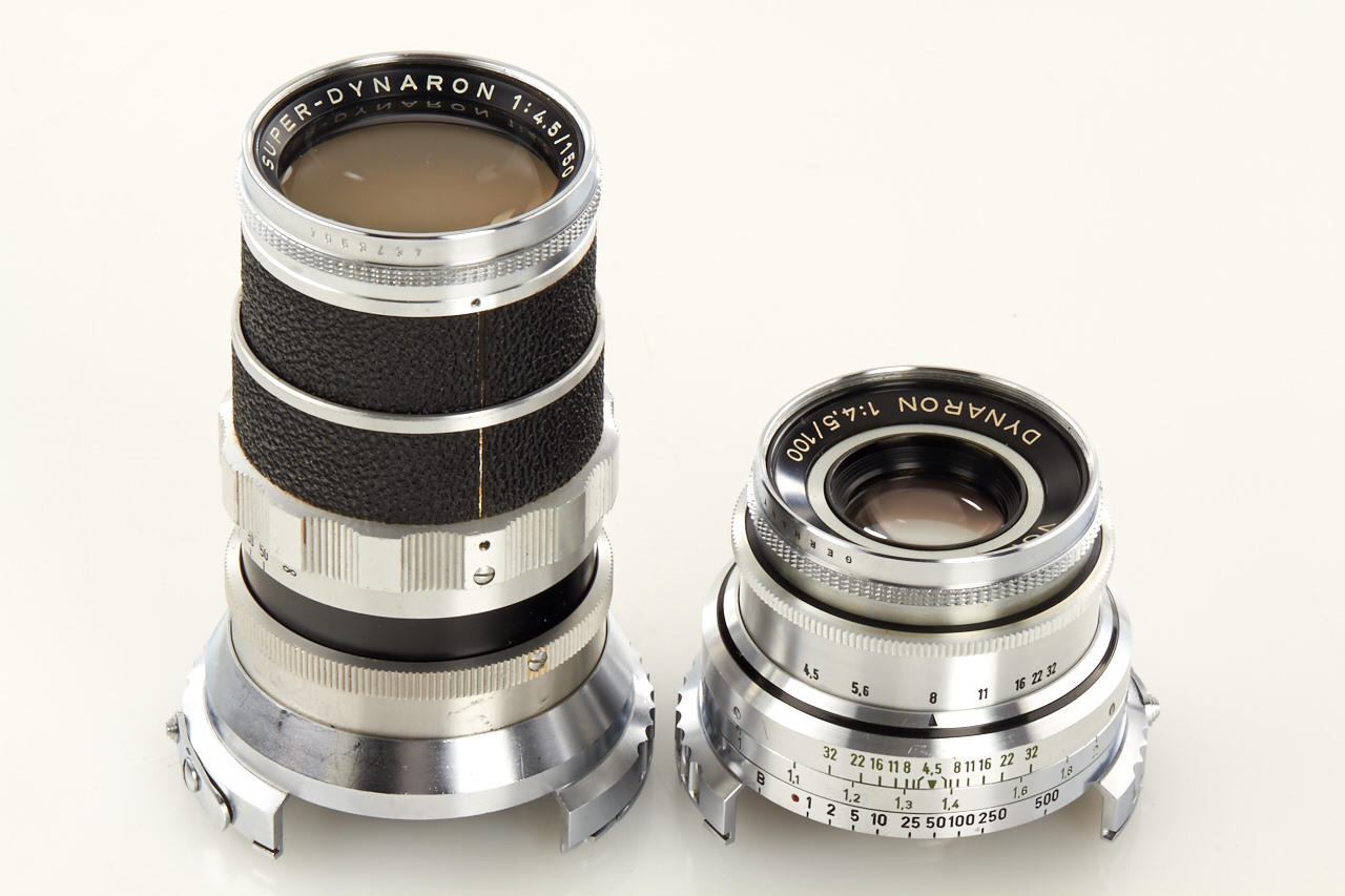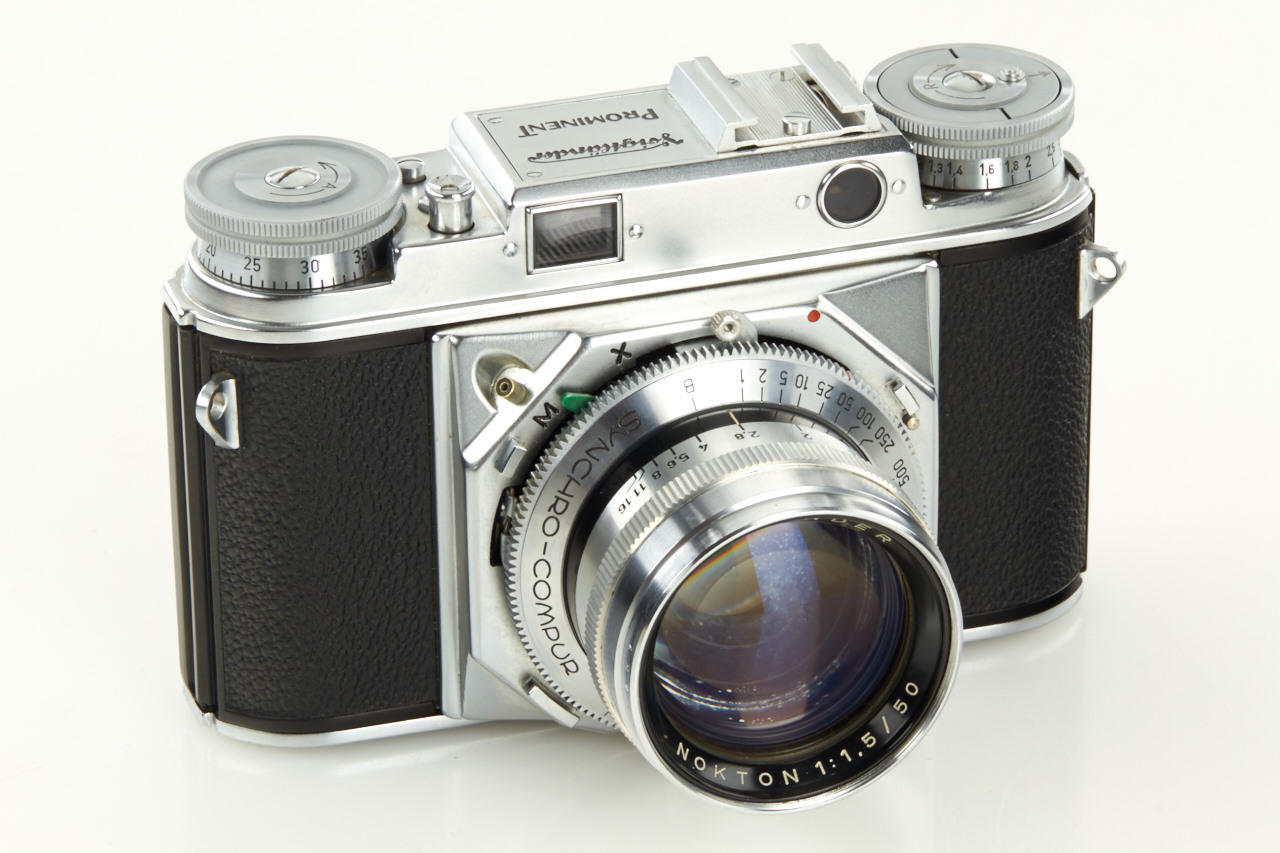 updated 1953 version of the 35mm Prominent in near mint condition, with Nokton 1.5/50mm no.3546915, Dynaron 4.5/100mm no.3652284 and rare Super-Dynaron 4.5/150mm no.4676904