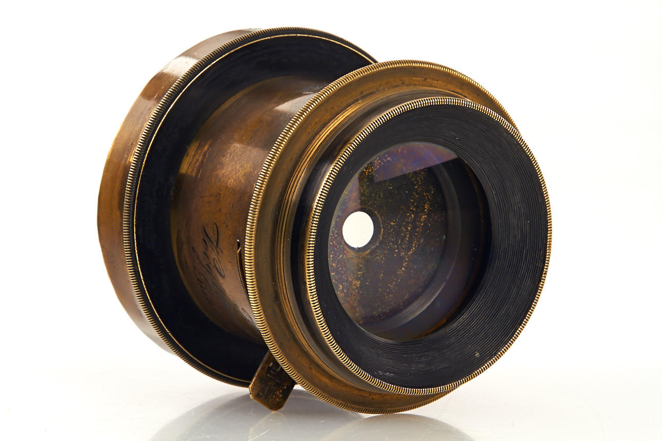 quite rare and historically interesting lens made by Voigtländer under licence of Carl Zeiss Jena, focal length 210mm, total height 56mm with one Waterhouse stop, good original condition