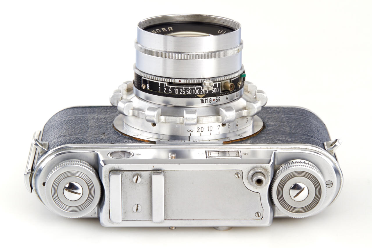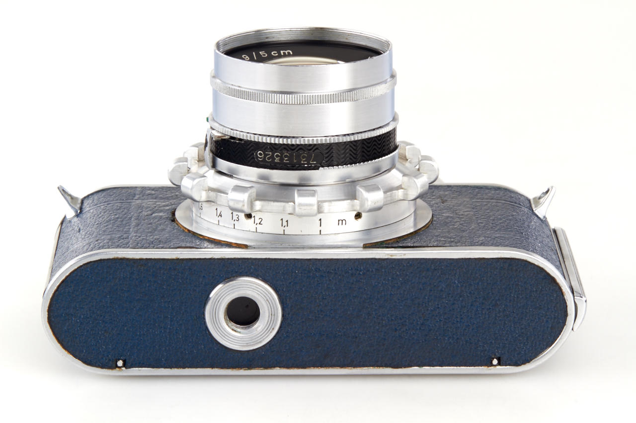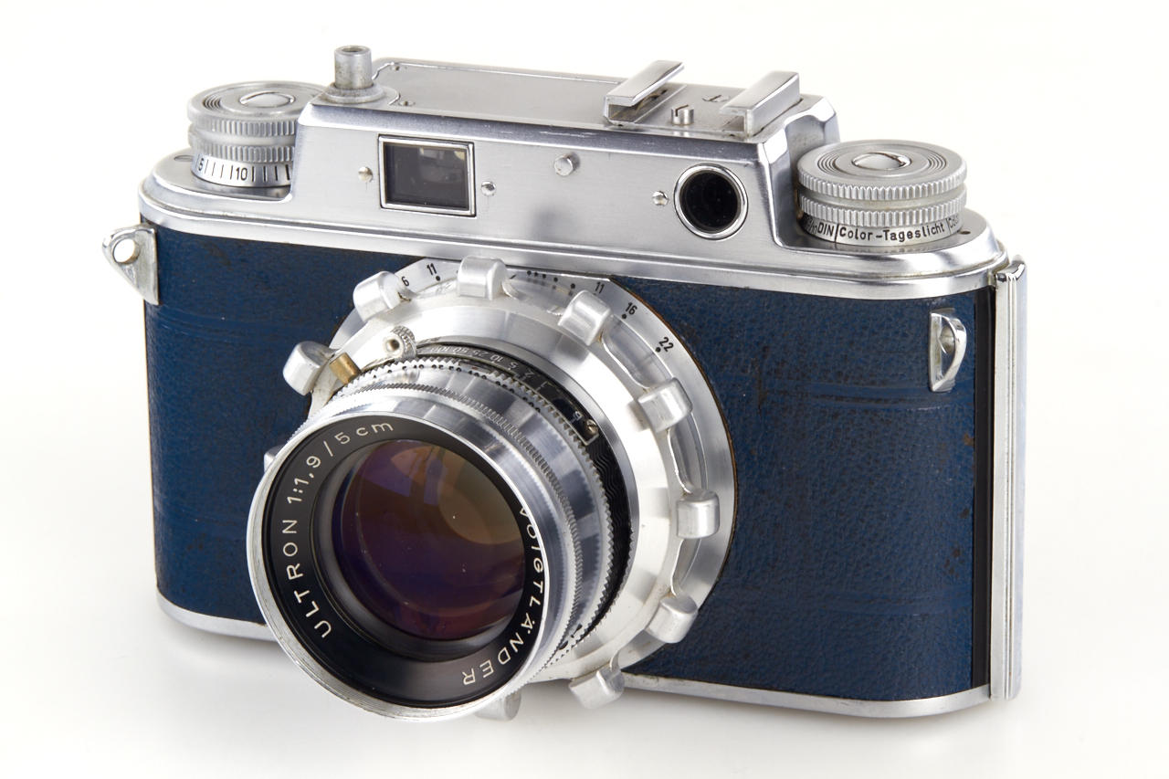 The famous third Vito III prototype PR 2059 with rangefinder, fixed Ultron 1.9/5cm in Compur shutter to 1/500 sec., blue leather covering stamped 'Voigtländer' on the rear, the camera is illustrated in 'Voigtländer Report 1' by Claus Prochnov on page 43 - camera in fine and fully working condition, clean lenses