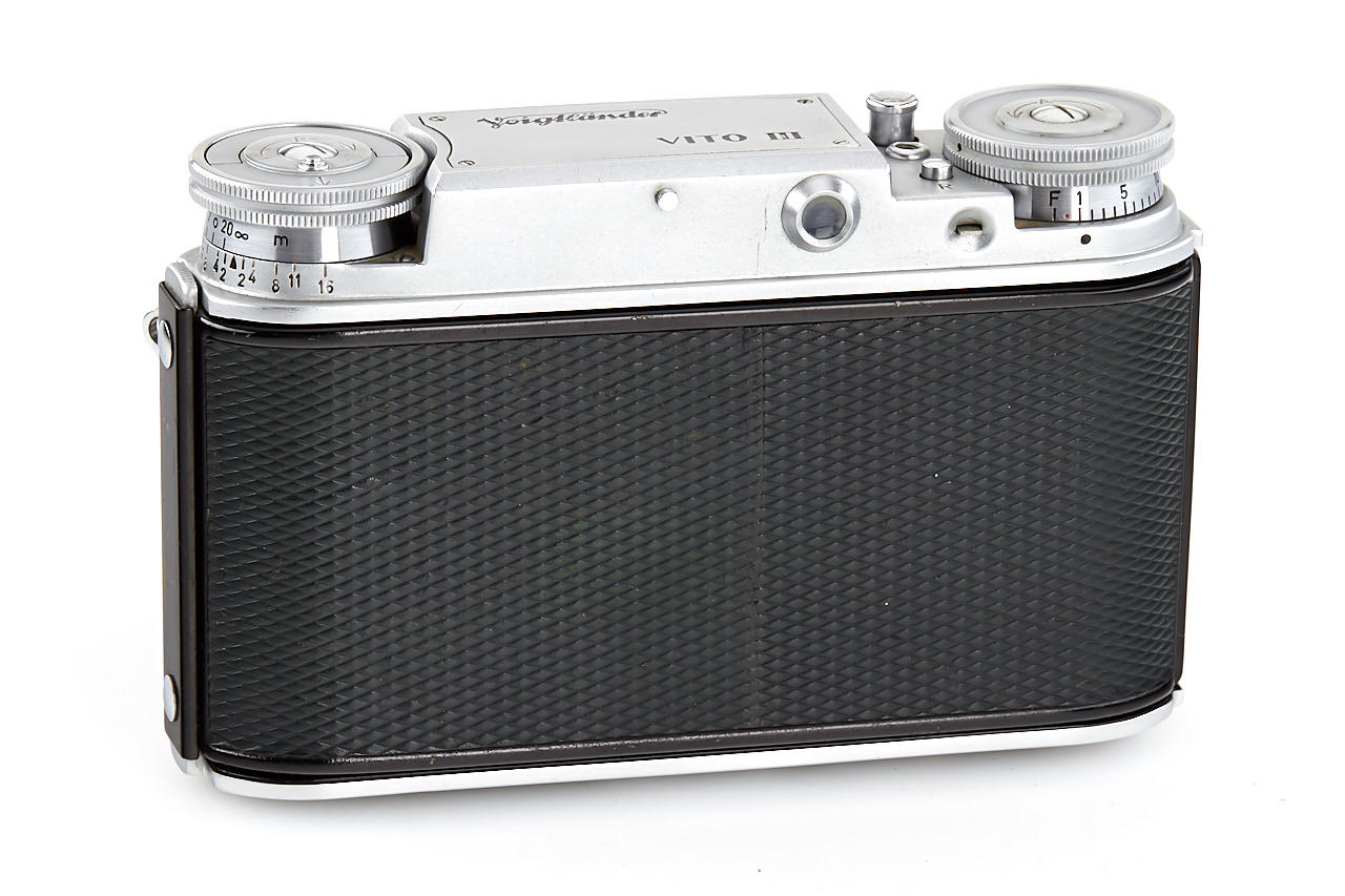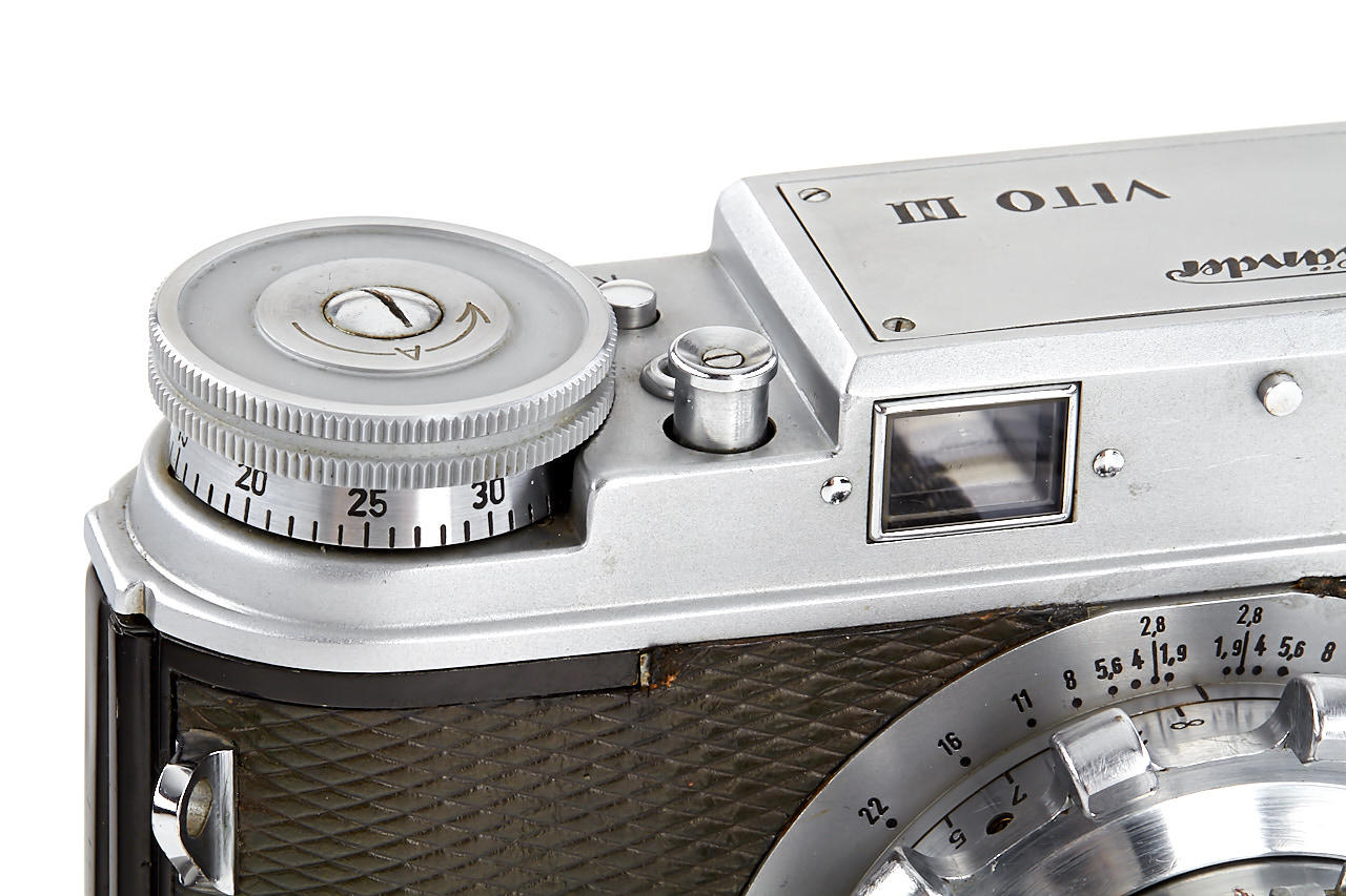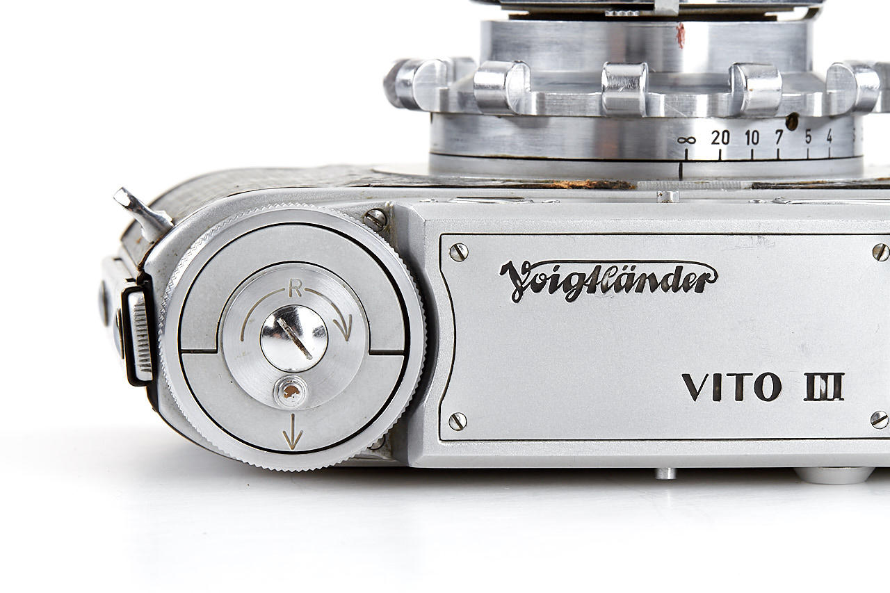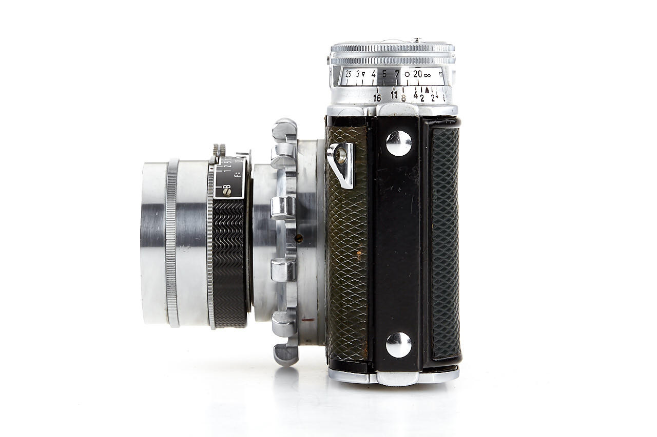 The famous second Vito III prototype PR 2058 with rangefinder, fixed Ultron 1.9/5cm in Compur shutter no.7313406, green patterned leather covering, the camera is illustrated in 'Voigtländer Report 1' by Claus Prochnov on page 43!