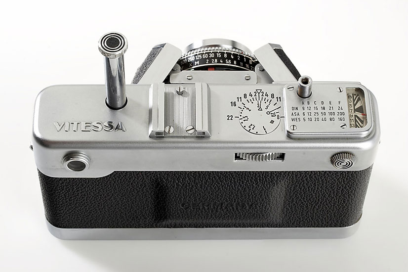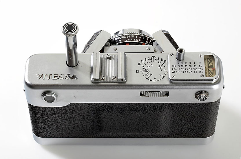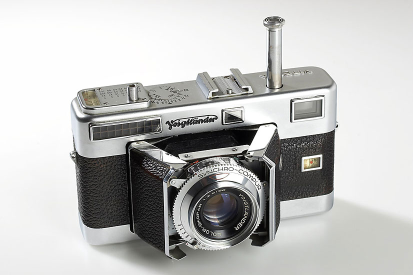Vitessa L no.3921800 with Color-Skopar 3.5/50mm, case, Vitessa L no.4113878 with Ultron 2/50mm and rare flash case (2)
