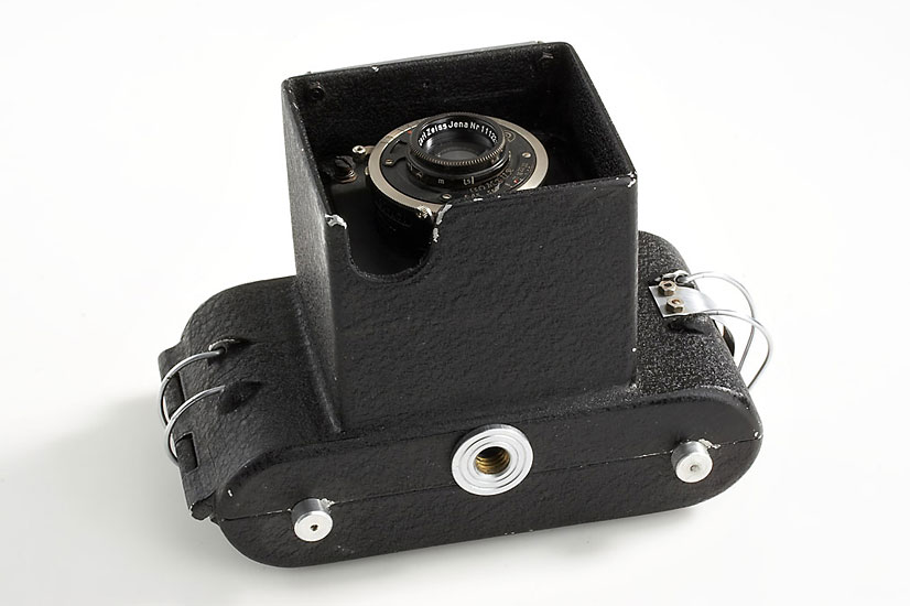 6x6/4.5x6cm, very rare hand-held aerial camera for 120 rollfilm, designed by the well-known Czech Photographer Ing. Premsyl Koplic, Tessar 4.5/8cm no.1112217 in Compur, very good condition