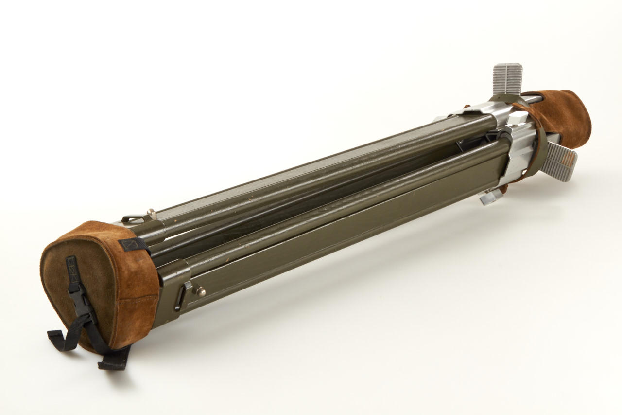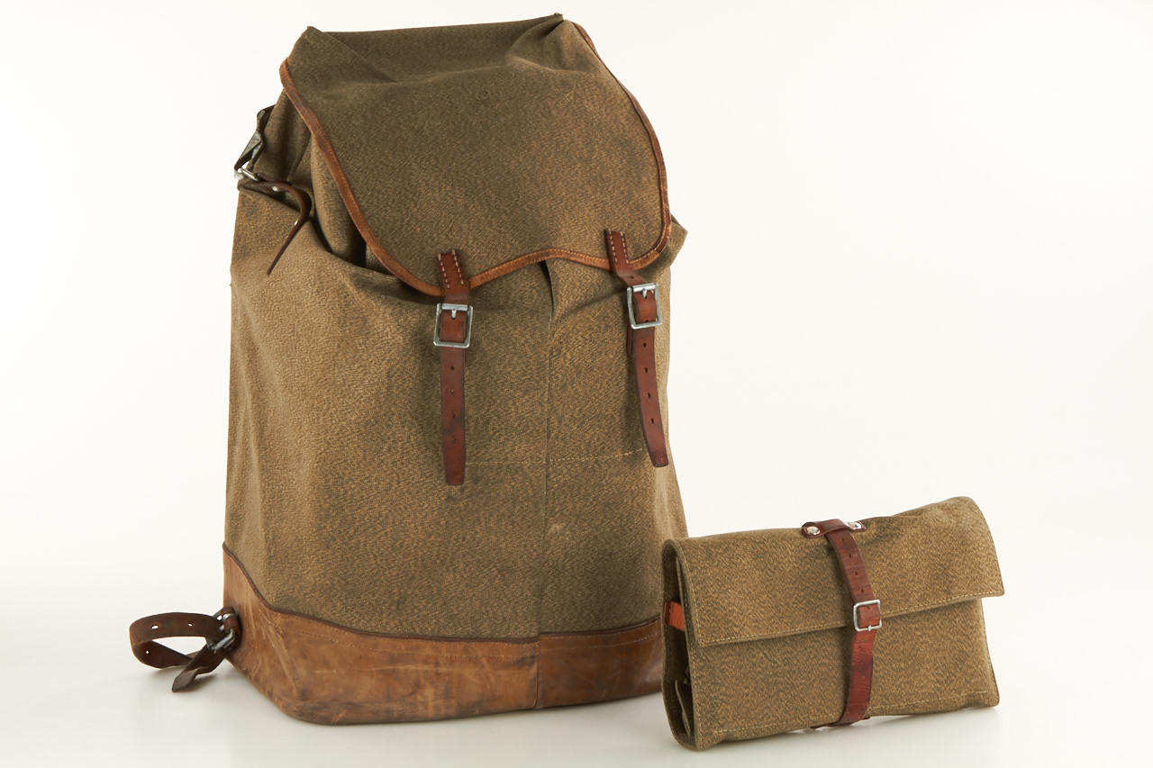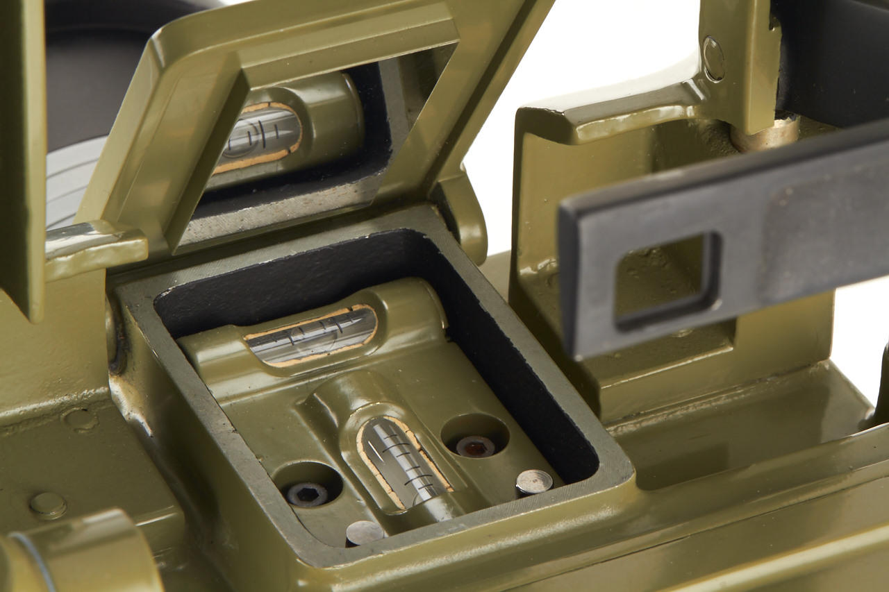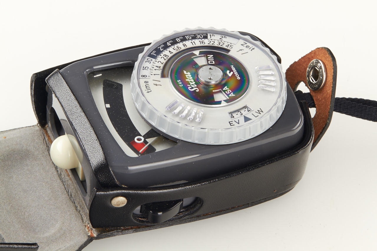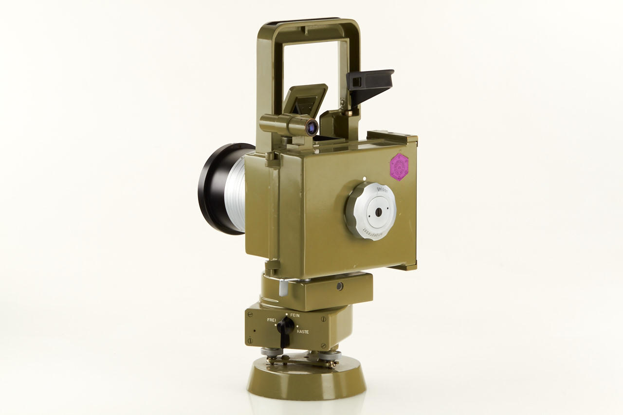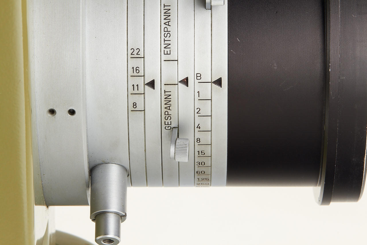 very rare 4x5" wide angle panoramic camera for seven single exposures on standard 4x5" film holders, one of only few examples made, with Wild 8/98,8mm lens, complete outfit with large wooden tripod, Wild compass, Gossen Sixtar light meter, orange and yellow filter, 6 Linhof double film holders, Polaroid holder, hood, cap and military backpack for the outfit