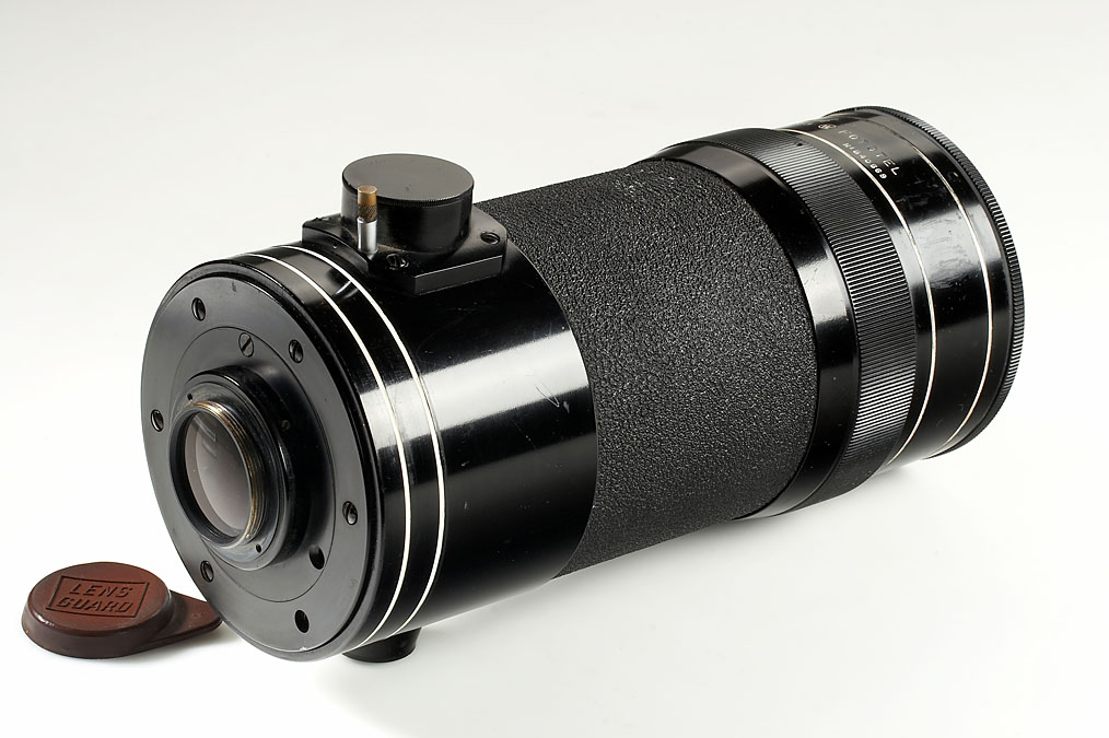 extremely rare 50cm mirror lens for Visoflex with E39 screw mount, original brown Wollensak leather case