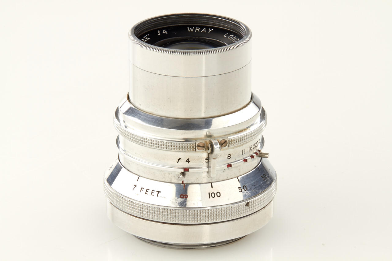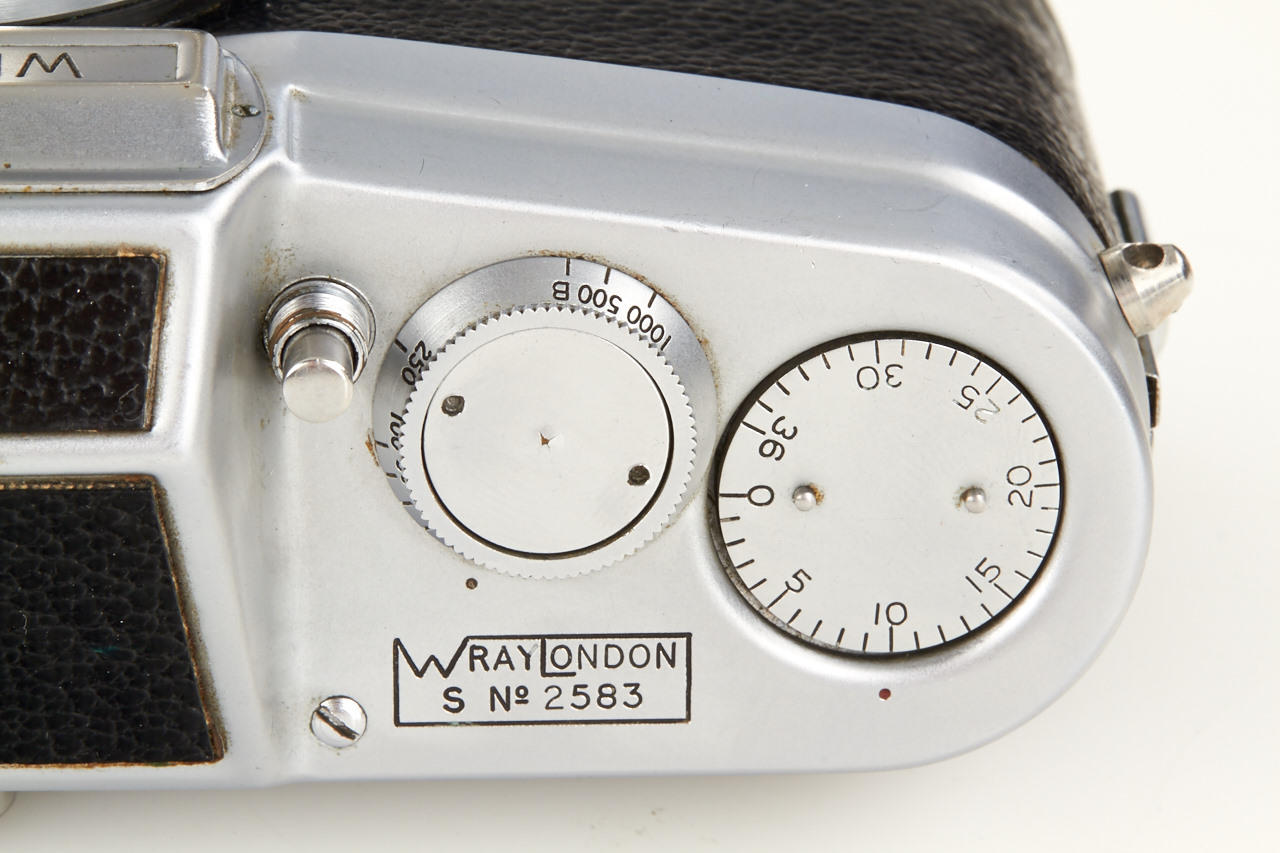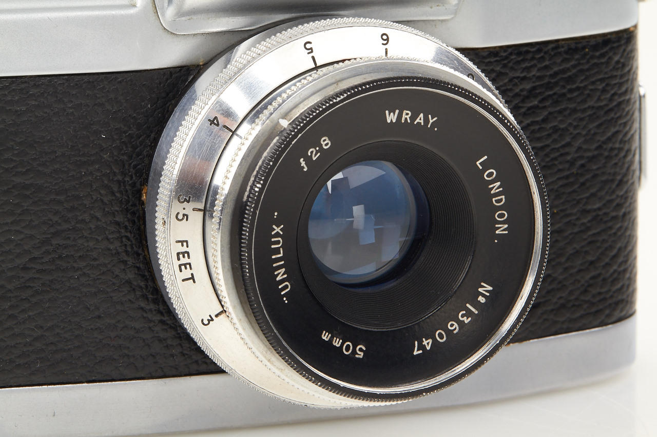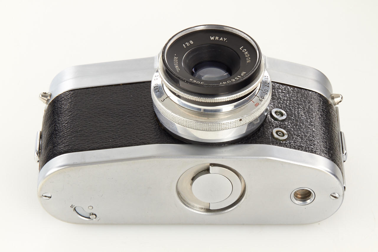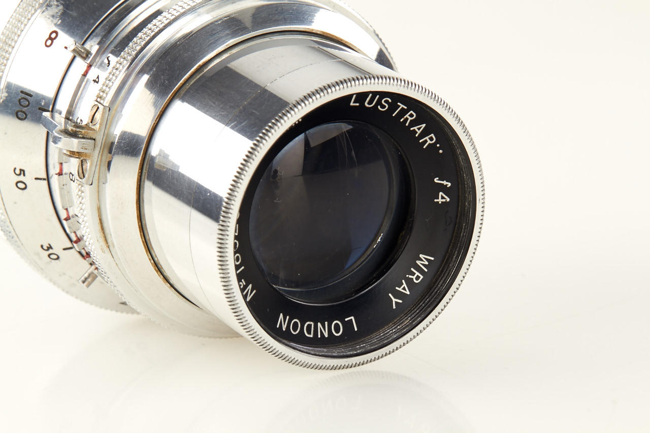 uncommon British camera in very good condition, with Wray Unilux 2.8/50mm no.136047 and Lustrar 4/90mm no.186264