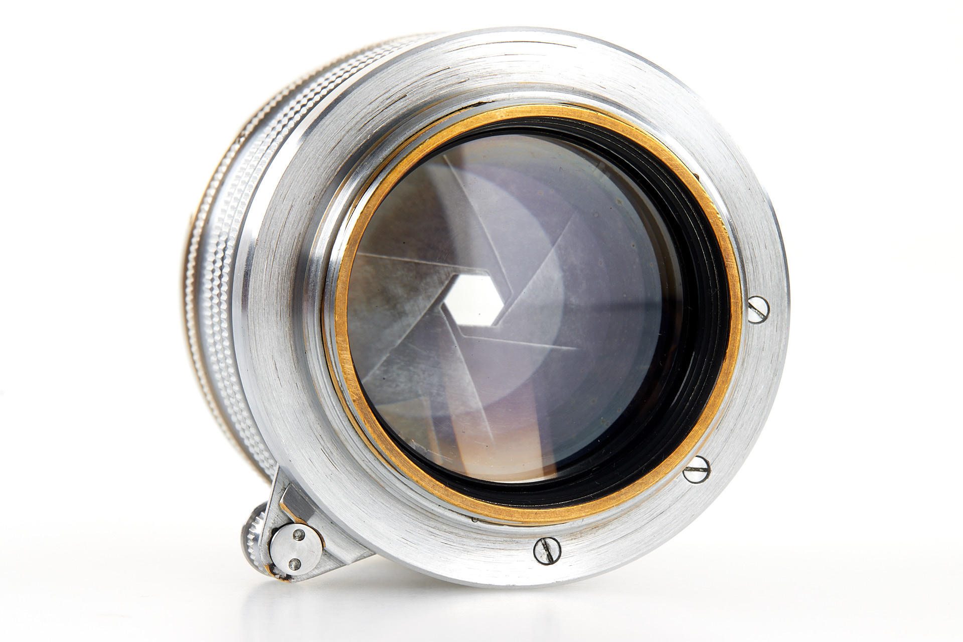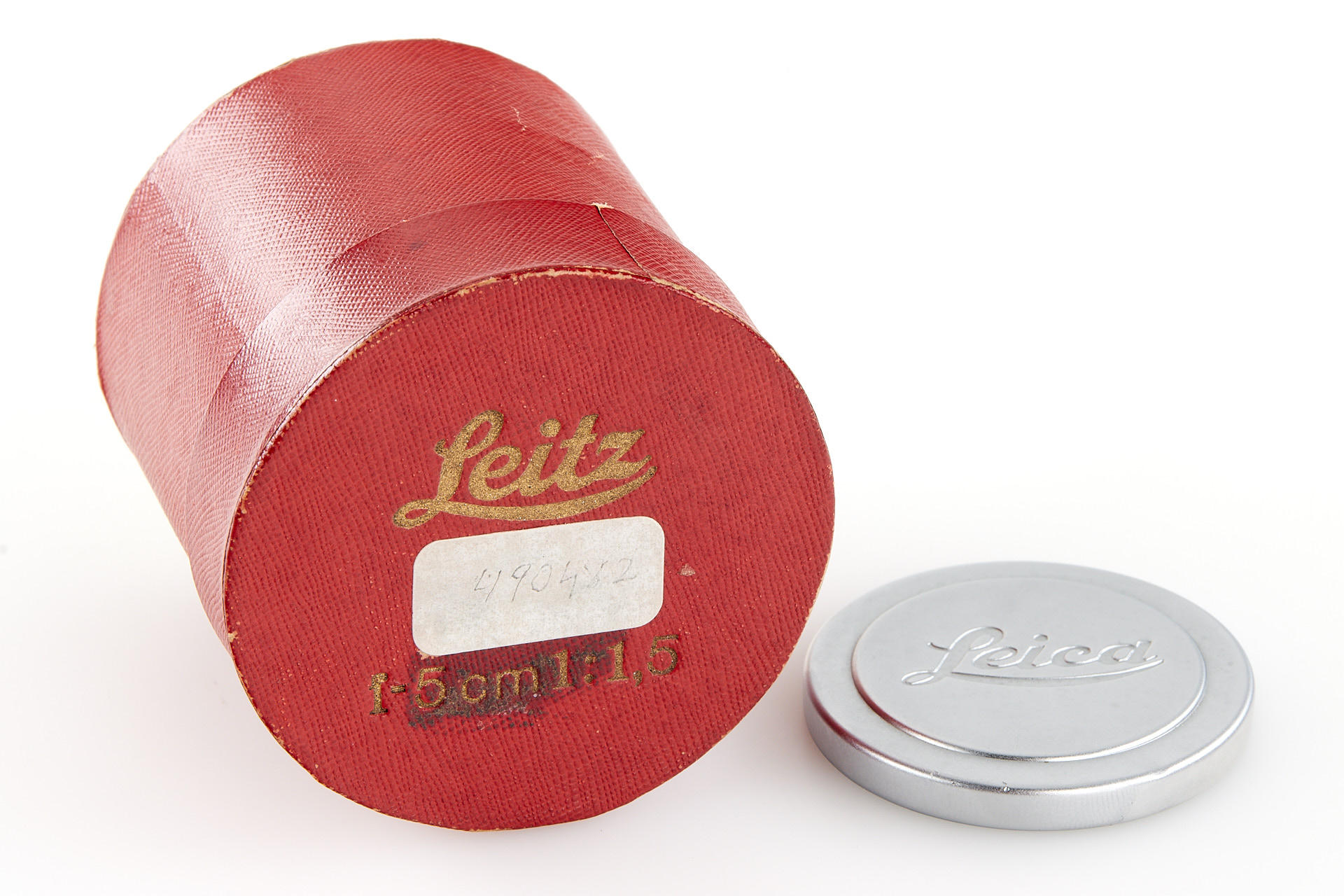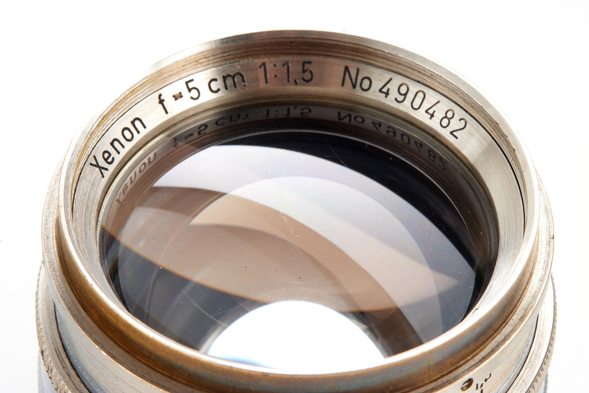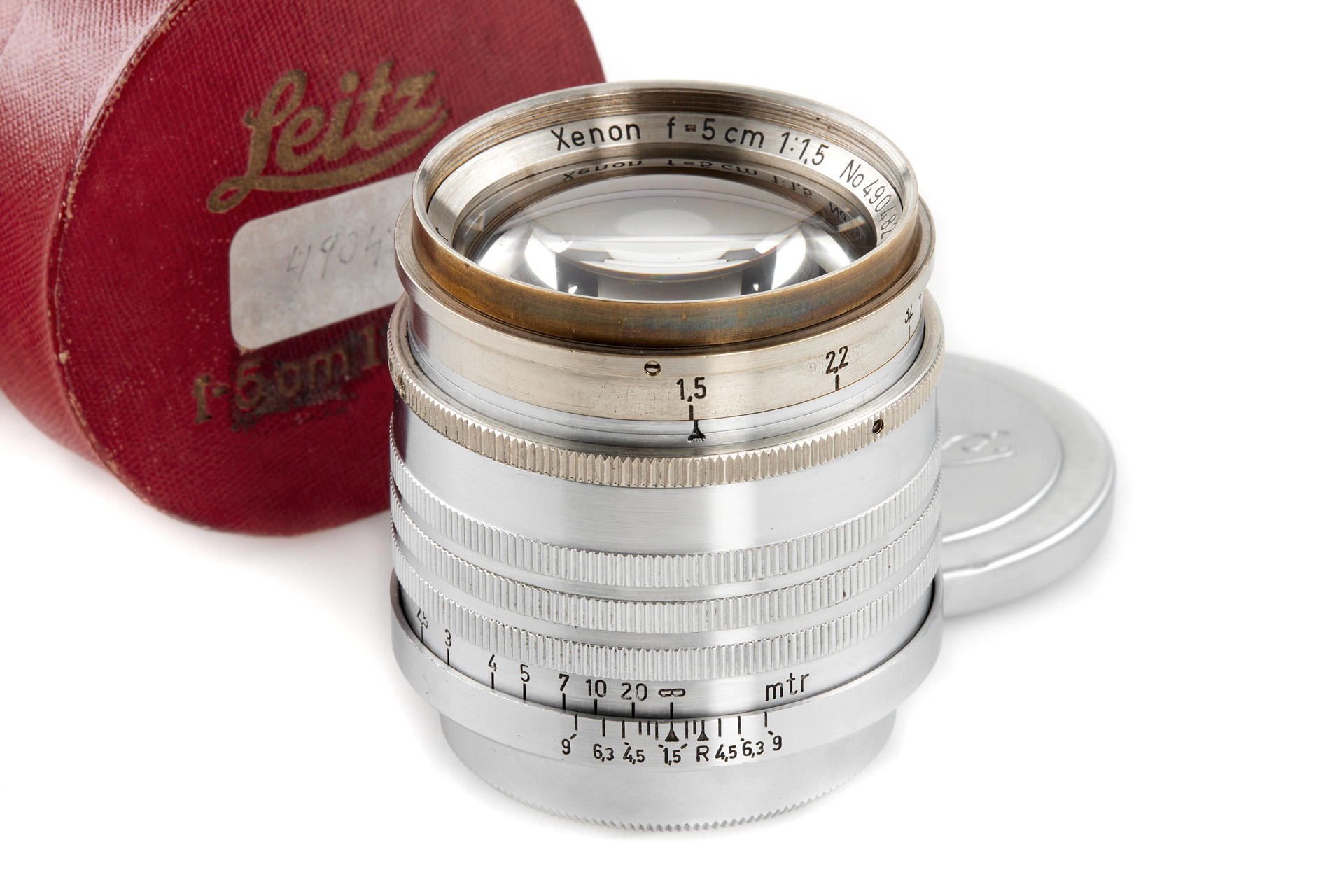 Very rare version of the Leitz Xenon with a heavy rim at the front, possibly made to use with X-ray Leica, in excellent condition, optics with only minimal cleaning marks, with both caps and red box