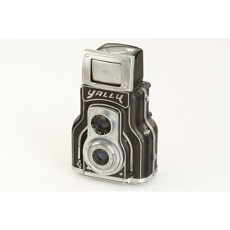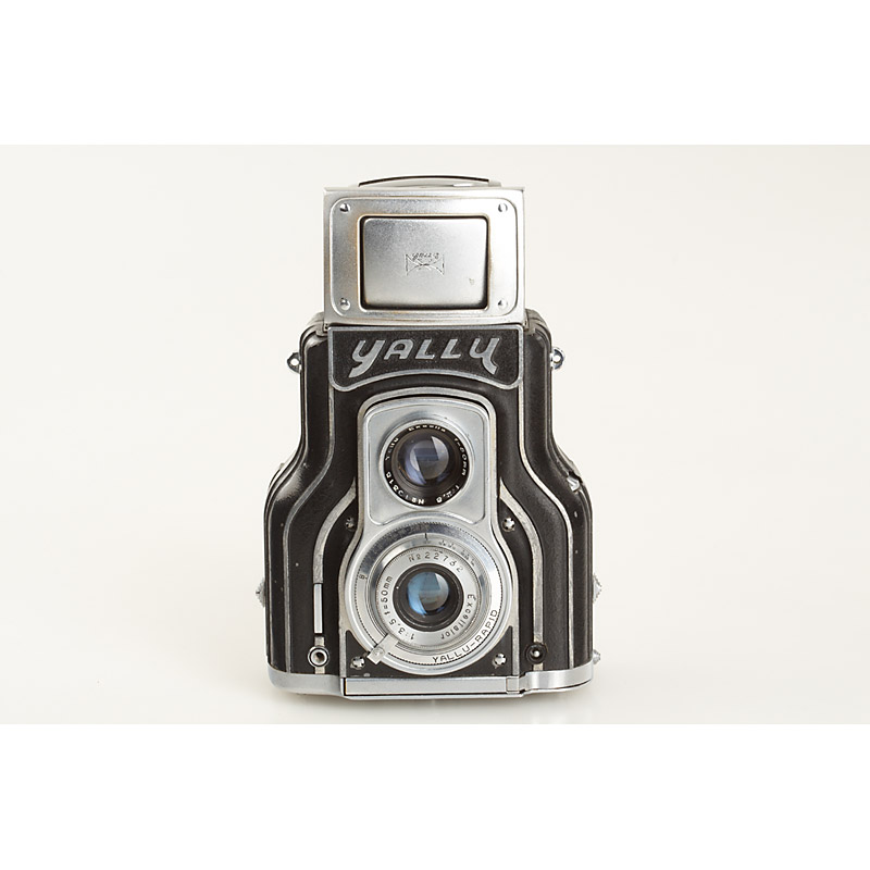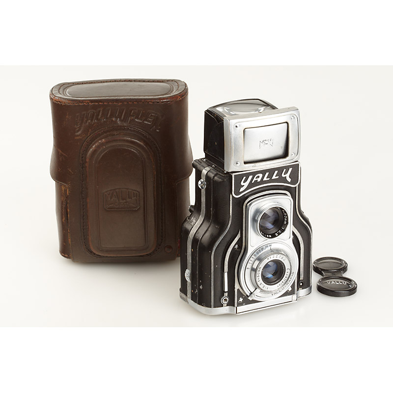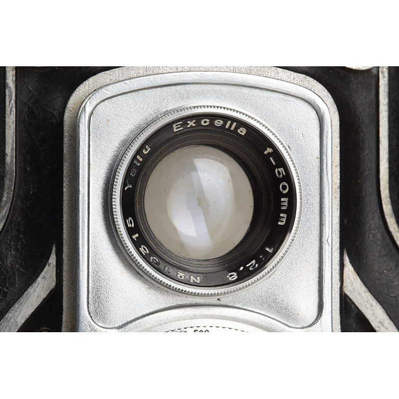 35mm TLR with unusual design, one of the rarest and most sought-after Japanese cameras, almost unknown with Excellsior 3.5/50mm no.22732. The total production of this spectacular camera was not more than 50 examples, only very few are known to exist. In fine condition and perfect working order, with original Yallu case and Yallu cap.