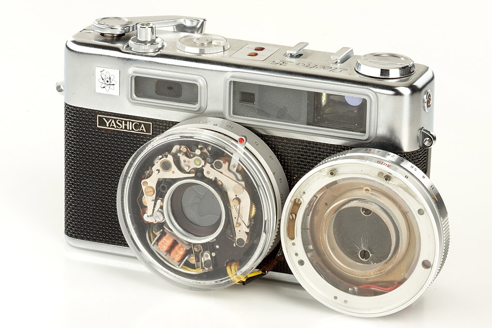 (1) Yashica TL Electro X with Plexiglas front part and external shutter speed dial, (2) Yashica Electro 35 with two Plexiglas covered shutters - both very rare (2)