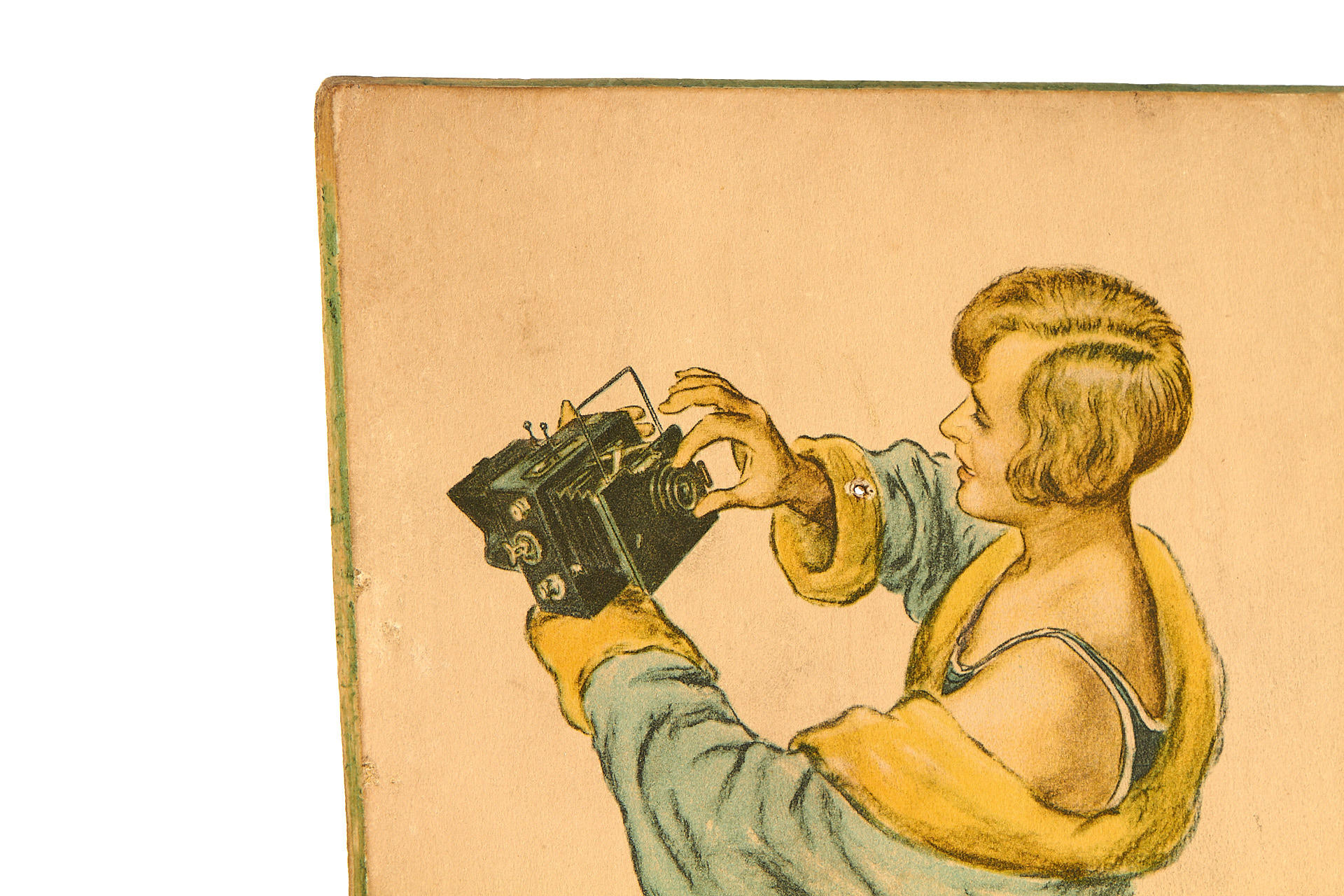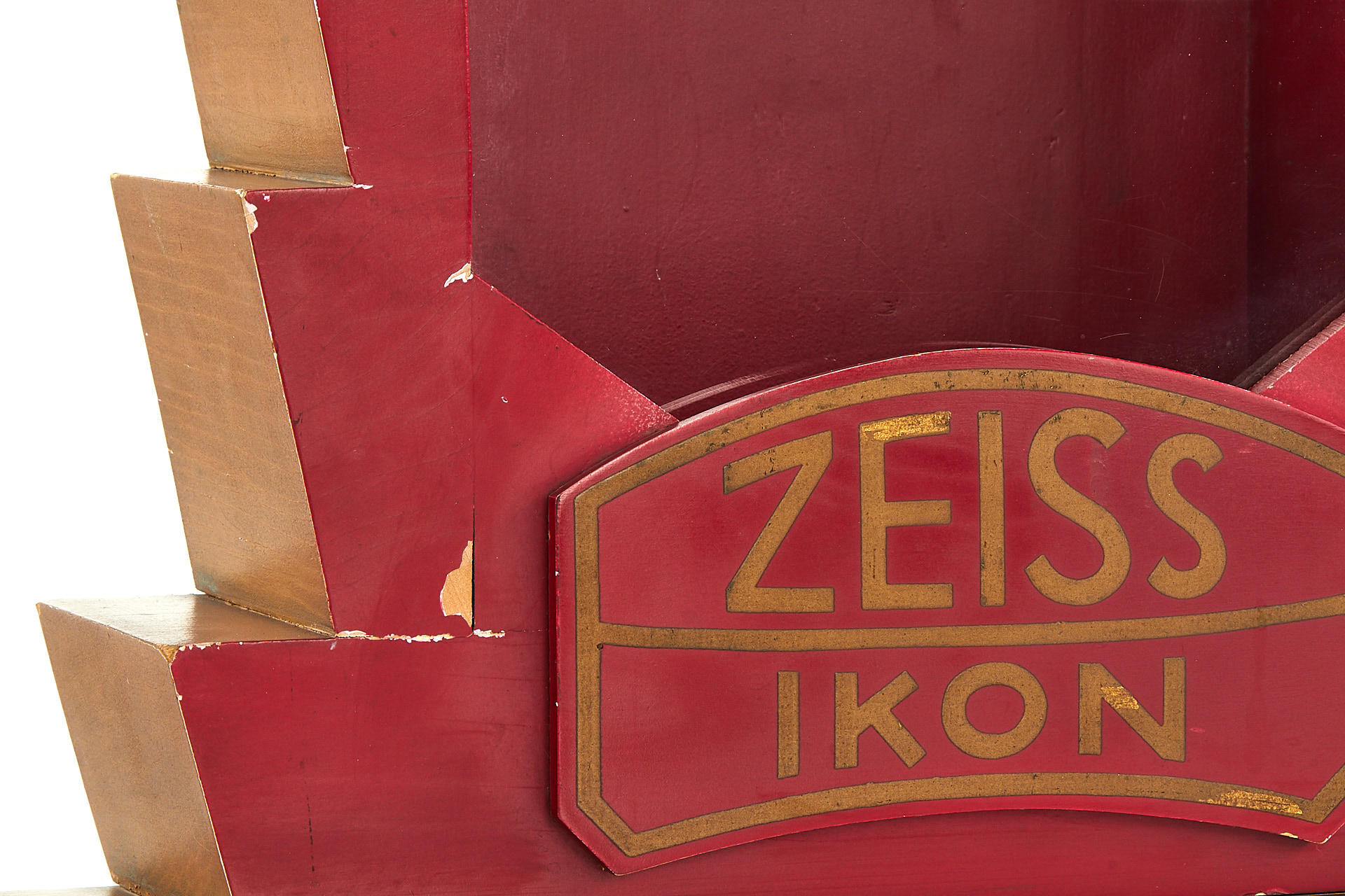 classic Zeiss Ikon folder stand in very good condition, c.26cm high, together with Zeiss Ikon Camera display stand 16x24cm