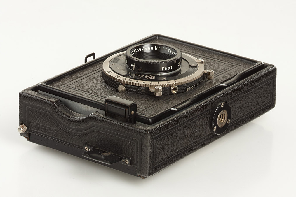 6.5x9cm, strut folding camera, Tessar 4.5/10.5cm no.1142696 in Compur shutter, cap, original instructions, filmpack cassette, Zeiss leather case - beautiful outfit in near mint condition