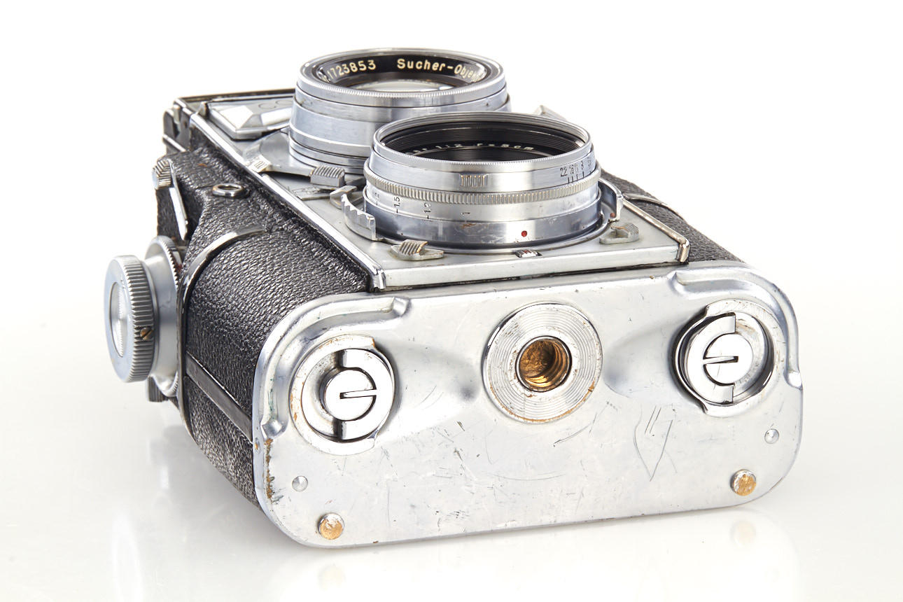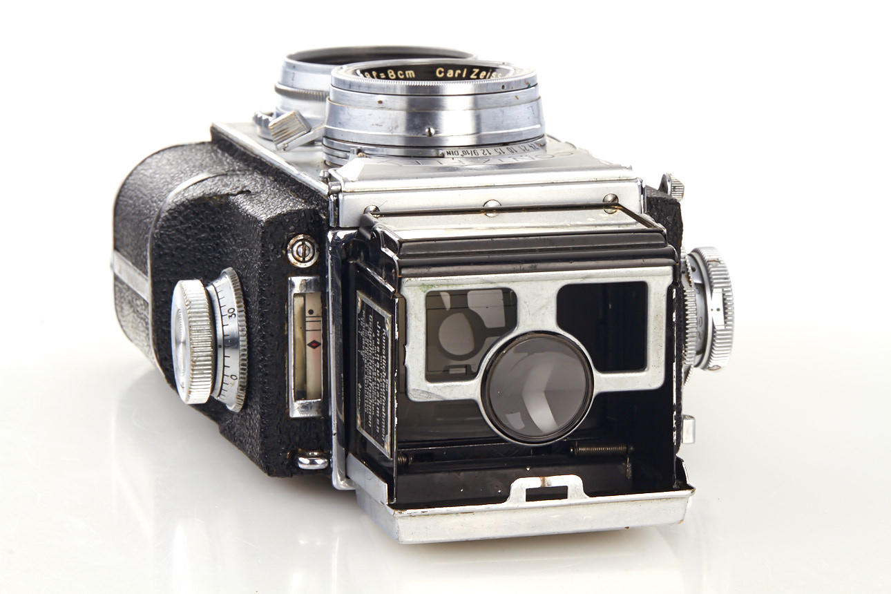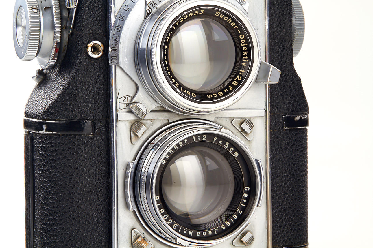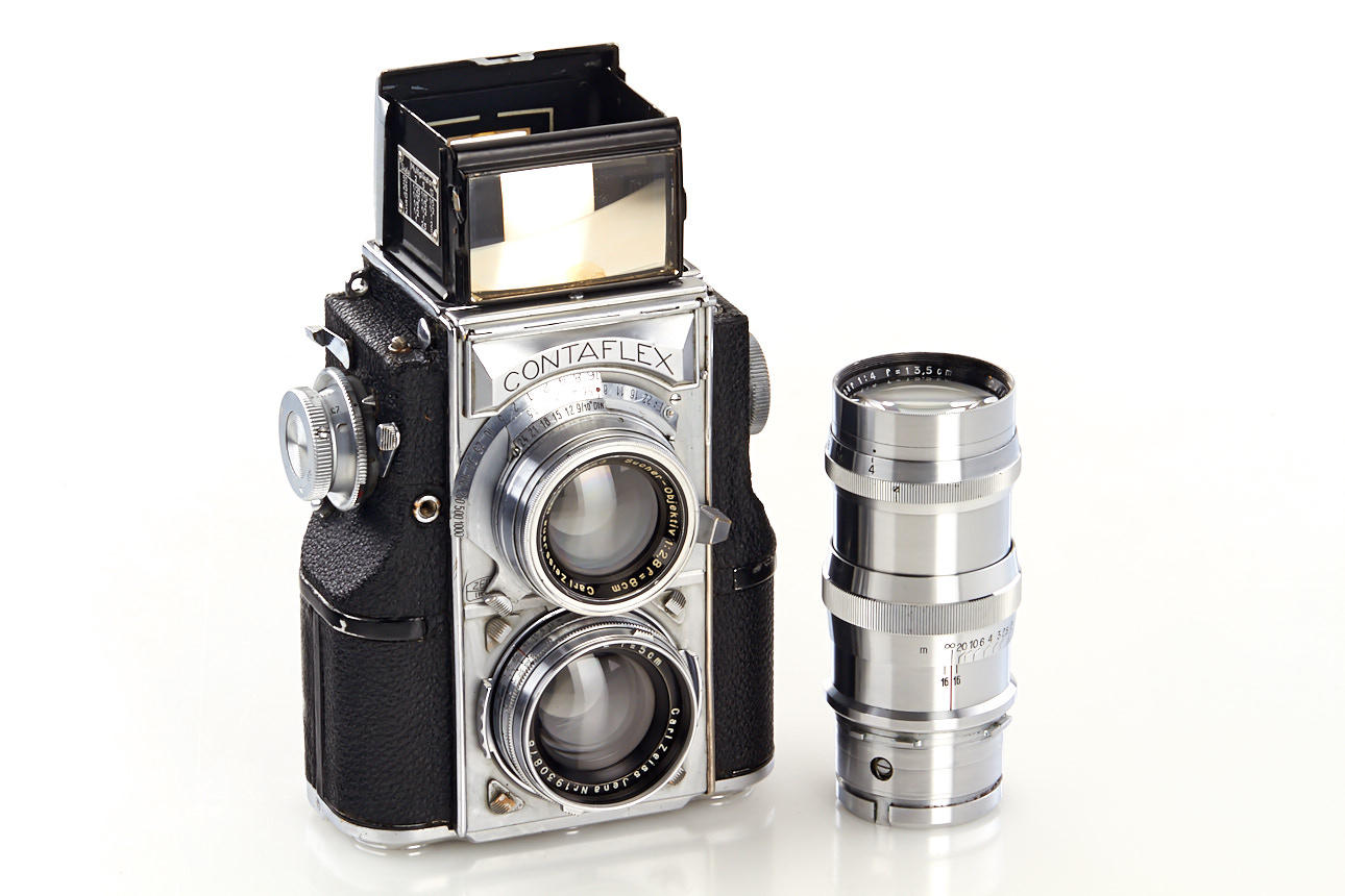 classic 35mm TLR, working shutter, meter not reacting, good BL finder, Sonnar 2/5cm no.1930878 taking lens, front cap, everready case, with near mint tele lens Sonnar 4/13.5cm no.2233866 in leather case