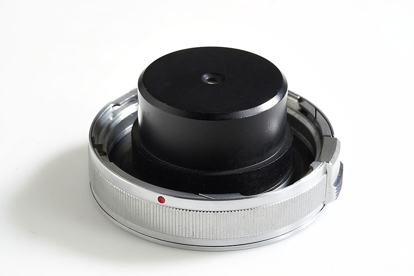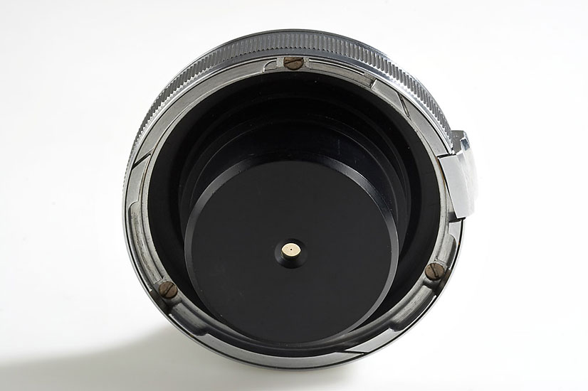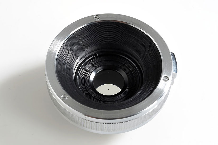 Pinhole lens with focus from very close to infinity, angle of view 80°, the lens consist of a metal coated coplanar disk of optical glass with a tiny hole in its very centre, in a Contax lens mount. This pinhole lens was used to take wide angle pictures with an extreme depth of field. Zeiss Ikon produced only six of these lenses in the early 1950's especially for studies in the field of locomotive design. The lens is described by Wolf Wehran in 'Oldtimer' and illustrated with the famous Contax prototype VK27, caps. None of these lenses have ever been sold in a public auction.
