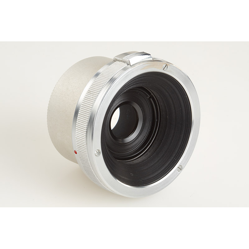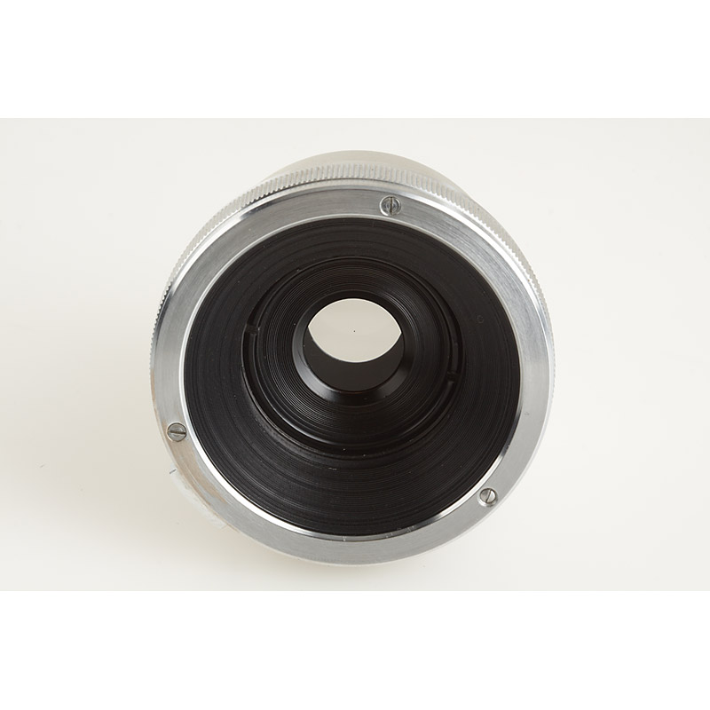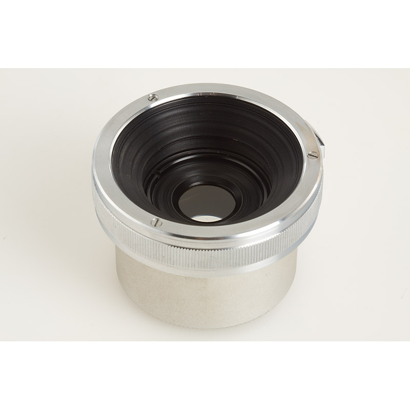 Pinhole lens with focus from very close to infinity, angle of view 80°, the lens consist of a metal coated coplanar disk of optical glass with a tiny hole in its very centre, in a Contax lens mount. This pinhole lens was used to take wide angle pictures with an extreme depth of field. Zeiss Ikon produced only six of these lenses in the early 1950's especially for studies in the field of locomotive design. The lens is described by Wolf Wehran in 'Oldtimer' and illustrated with the famous Contax prototype VK27, rear cap, mint condition, WestLicht sold one of these lenses in the 11th auction, no other sales are recorded