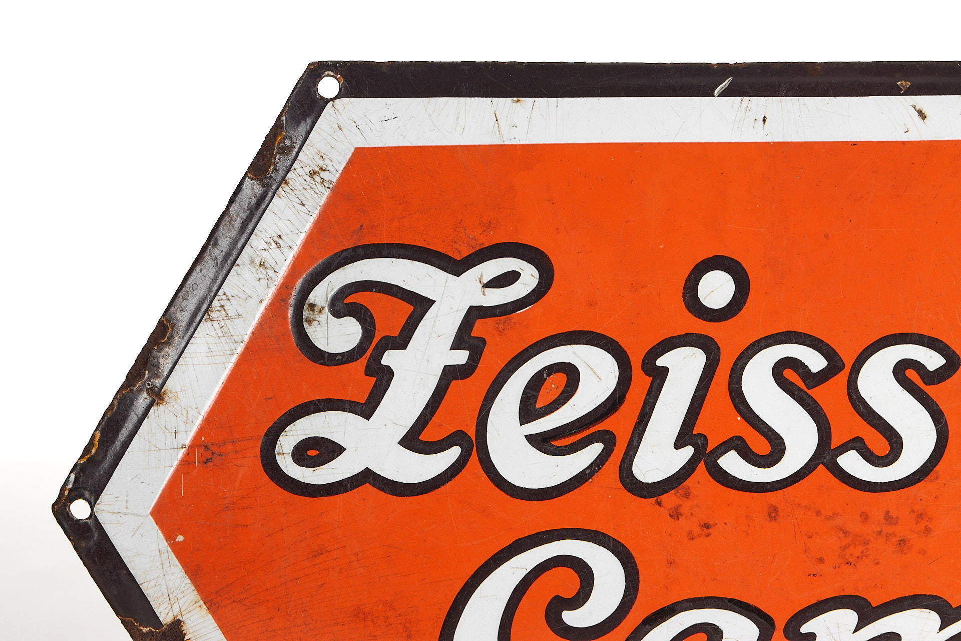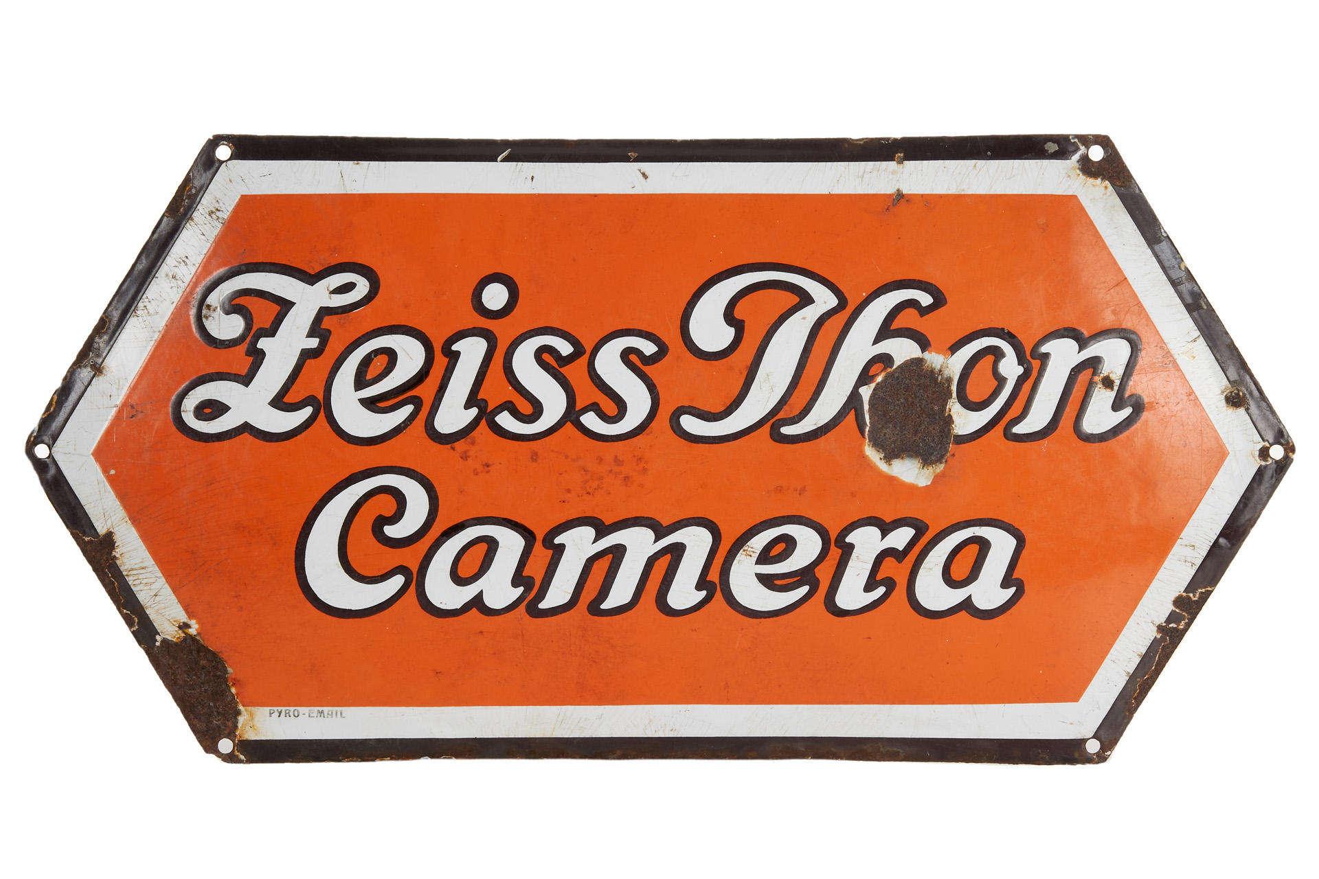 Classic enamel 'Zeiss Ikon Camera' advertising sign 66x32cm in good condition, some signs of corrosion