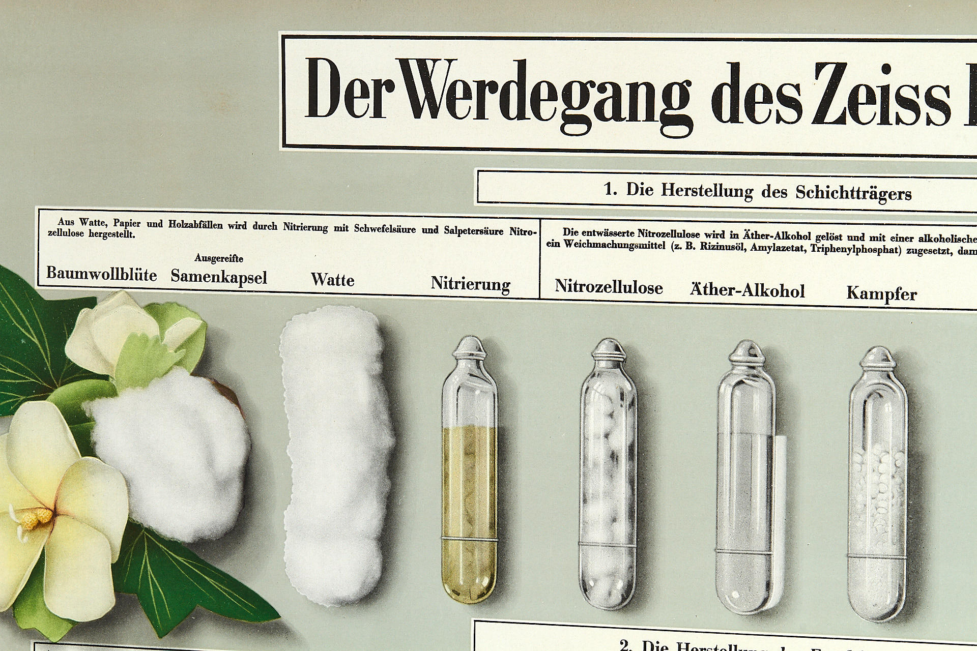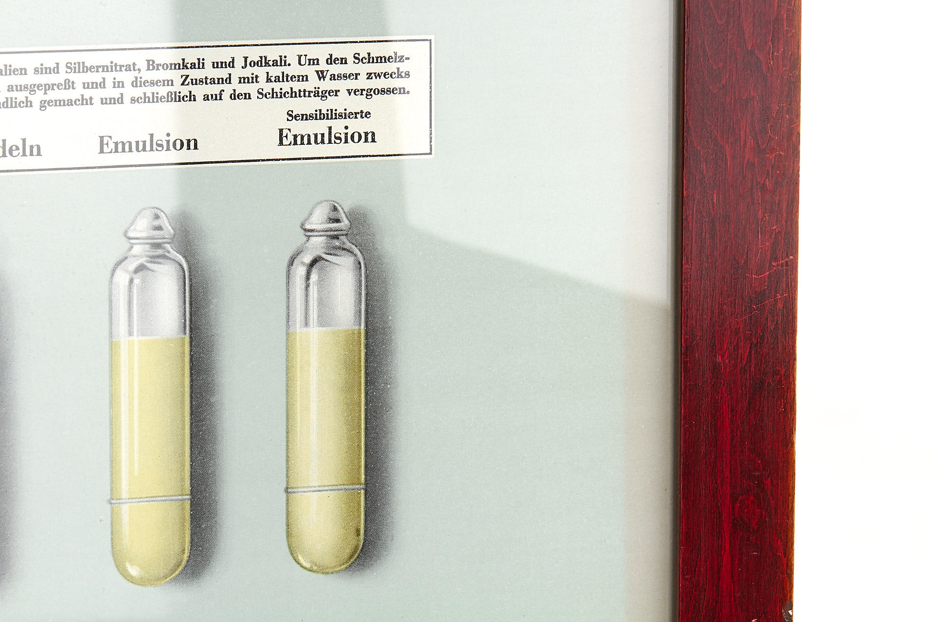 attractive framed poster, showing the steps of production of the Zeiss Ikon film, in wooden frame 60x70cm