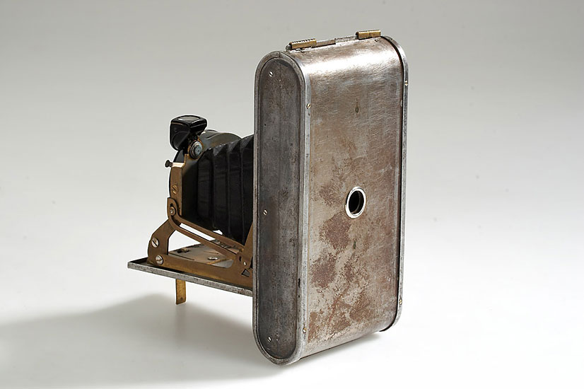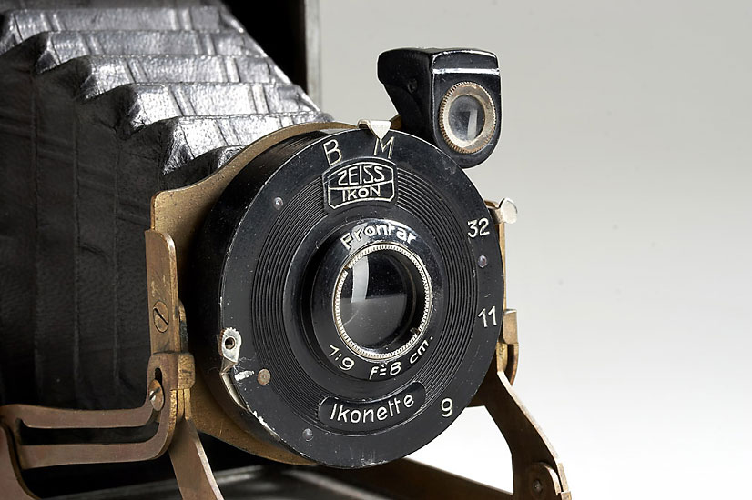 prototype Ikonette for 4x6.5cm, Frontar 9/8cm, completely made of brass, probably handmade, comes with the original Zeiss Ikon museum label, written: 'Versuchsmodell'