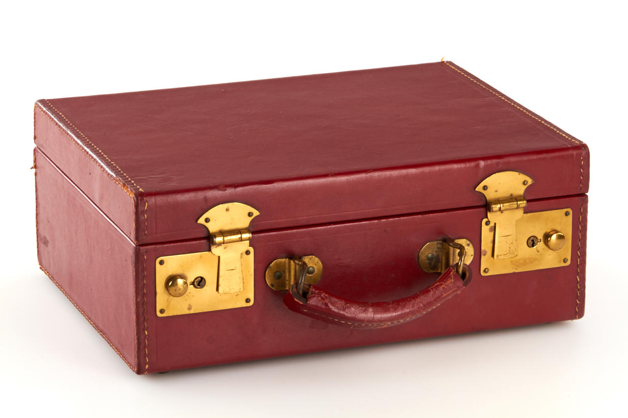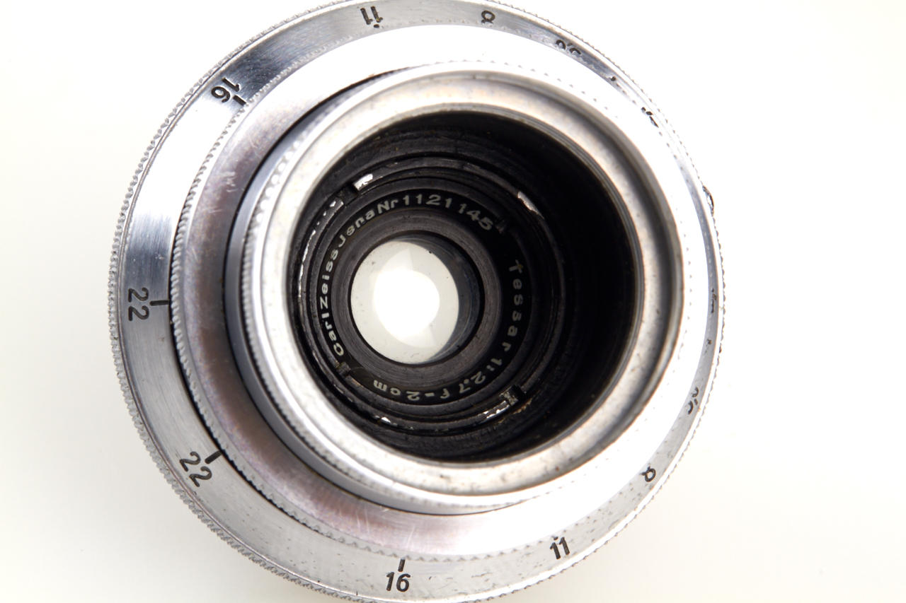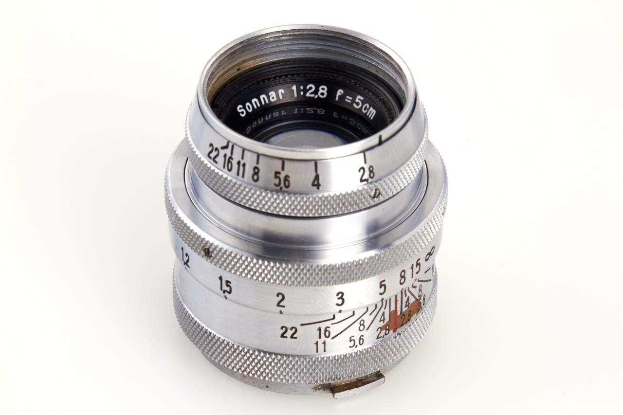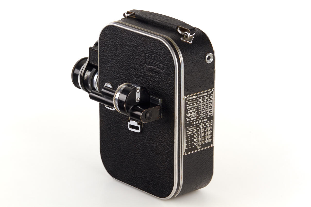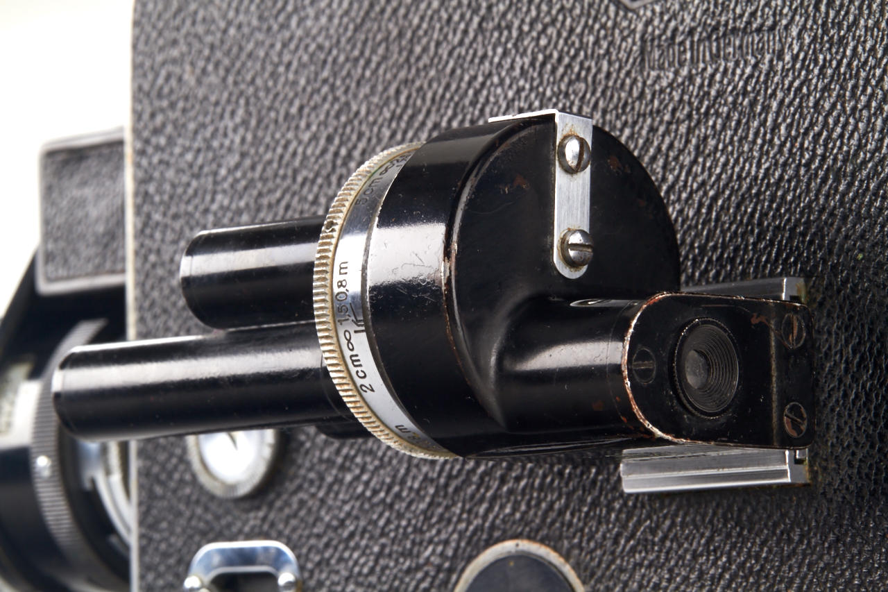 16mm spool load camera in very good working condition, with a complete set of 5 lenses: Tessar 2.7/2cm no.1121145, Sonnar 1.4/2.5cm no.1914293 (hood), Sonnar 2.8/5cm no.2014879, Sonnar 2.8/7.5cm no.2254559 (hood), very rare Tele-Tessar 6.3/18cm no.2073825, matching, very rare 436/21 viewfinder for every lens from 2cm to 18cm, red leather outfit case