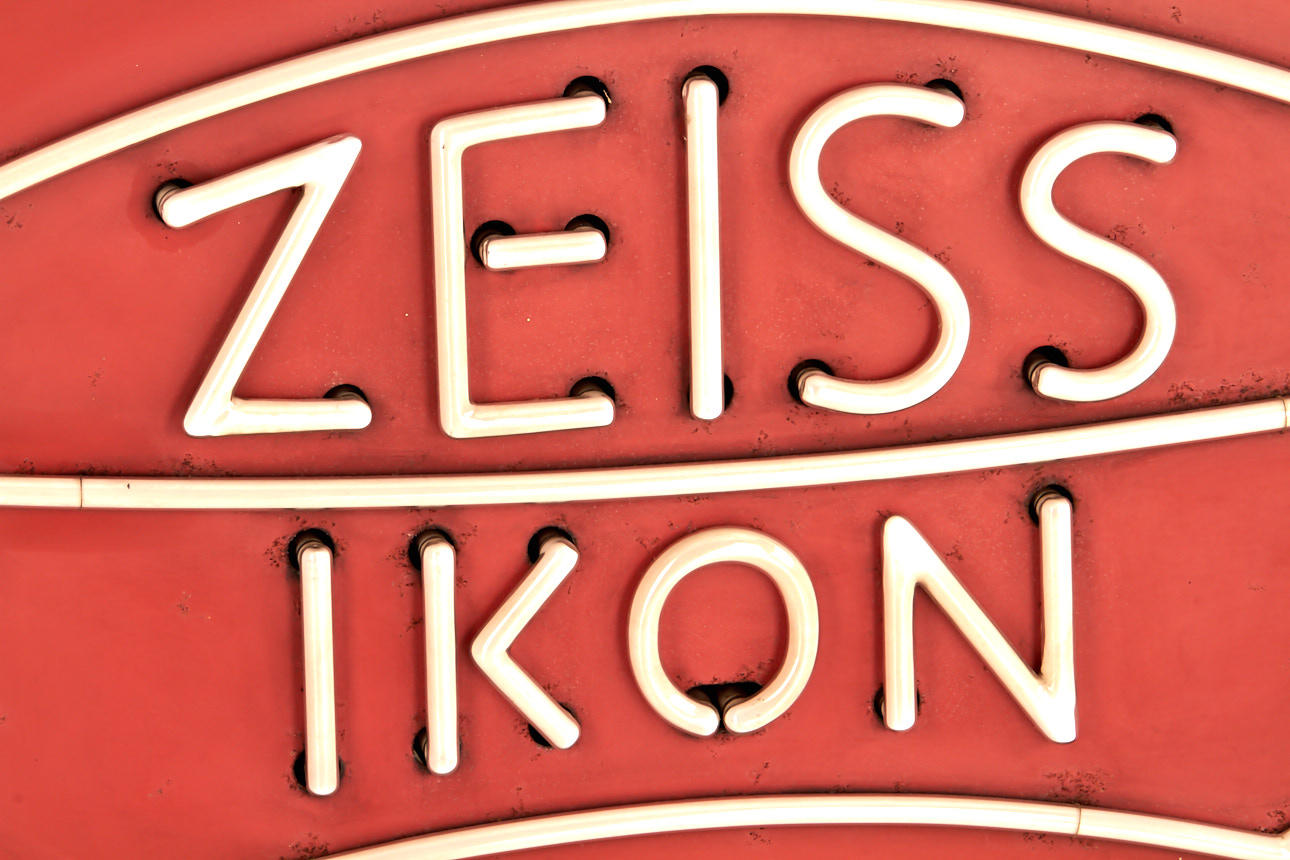original Zeiss Ikon neon display sign, painted steel housing c.50x35cm, perfectly working, with new cable, very attractive and rare