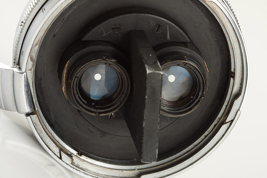 very rare wartime stereo lens for Contax with prism 543/70 no.W.26203, original 3.5cm stereo finder 432/5 - all in matching leather case