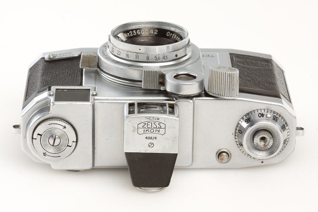 body in good working order with 3 matching lenses: very rare Orthometar 4.5/2.7cm no.2360042 with matching and very rare finder 432/8, Sonnar 2/4cm no.1845282 with cap, Sonnar 4/7.5cm no.2359389, all in very fine condition