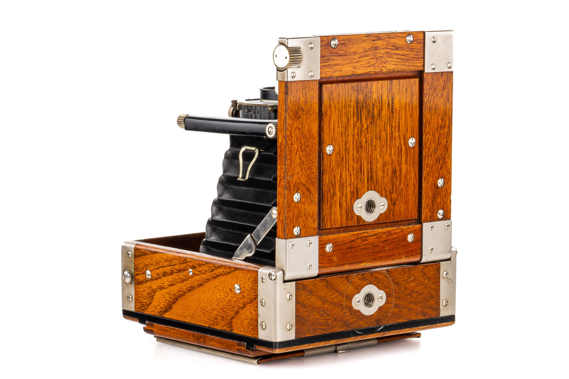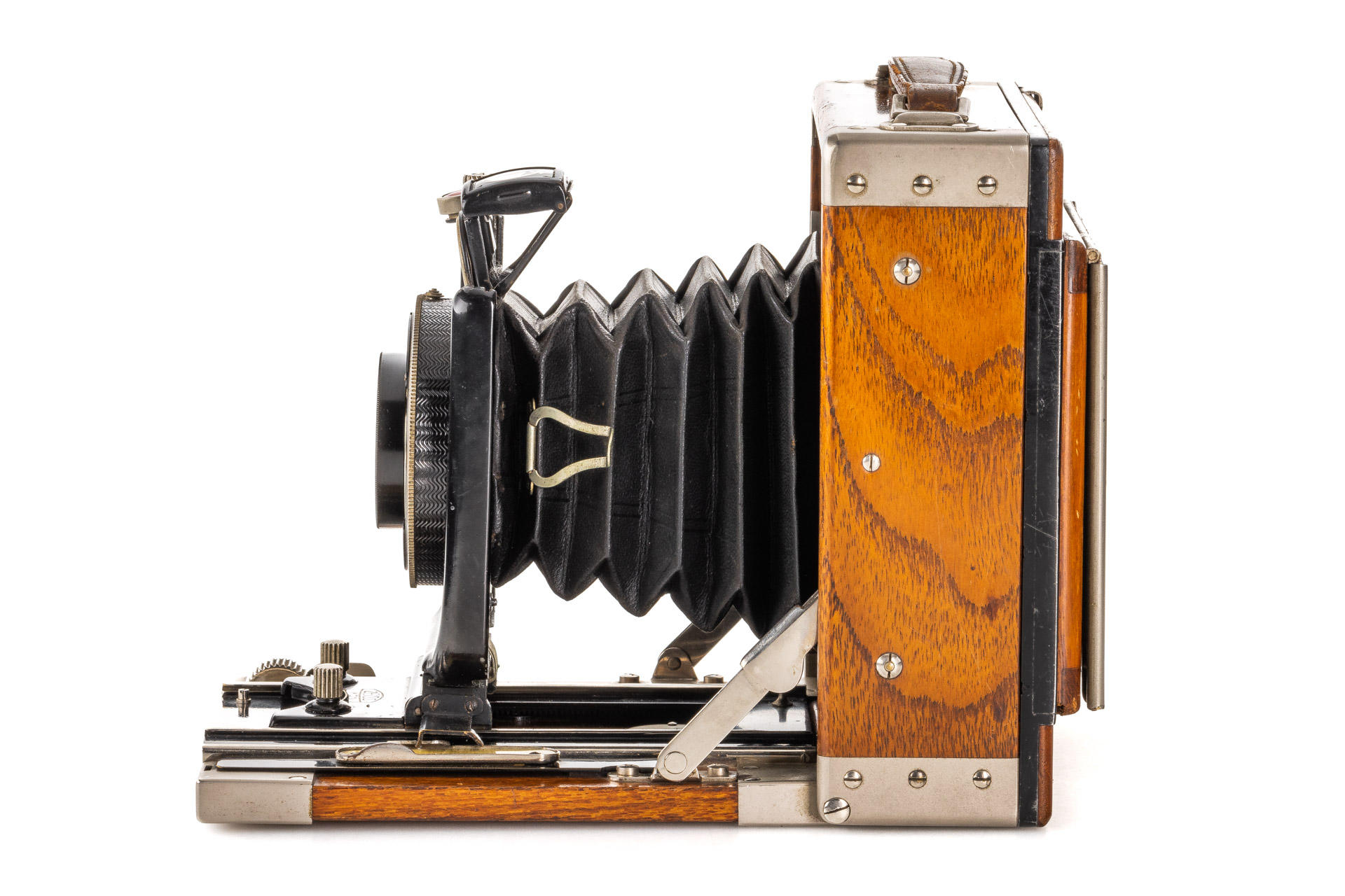 rare 9x12cm tropical camera in very good condition and working order, with original black bellows, Tessar 4.5/15cm no.2423411, with focusing back