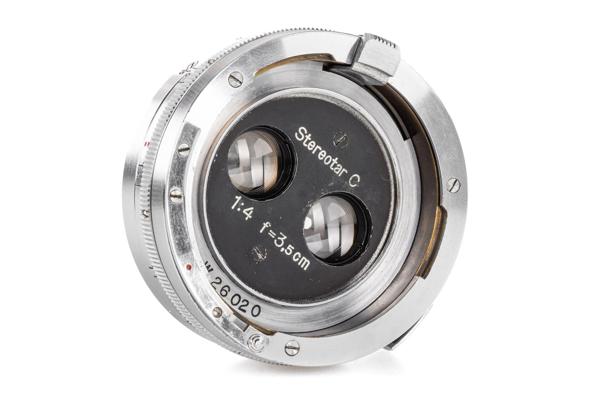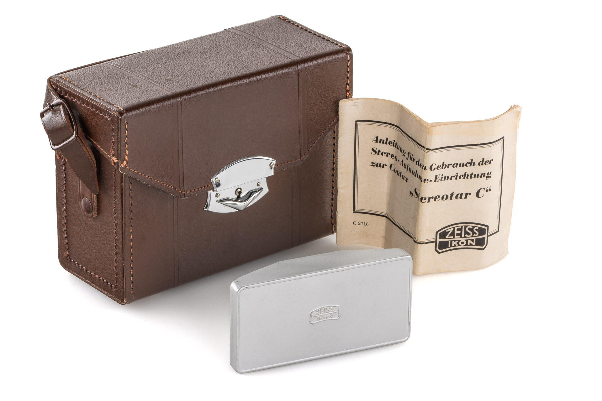 rare, pre-war Stereotar C outfit in beautiful, near-mint condition, including the 543/70 prism (matching serial number W.26020, with front cap), 543/30 stereo finder, special 543/72 attachment, original instructions, everything in fitted leather case