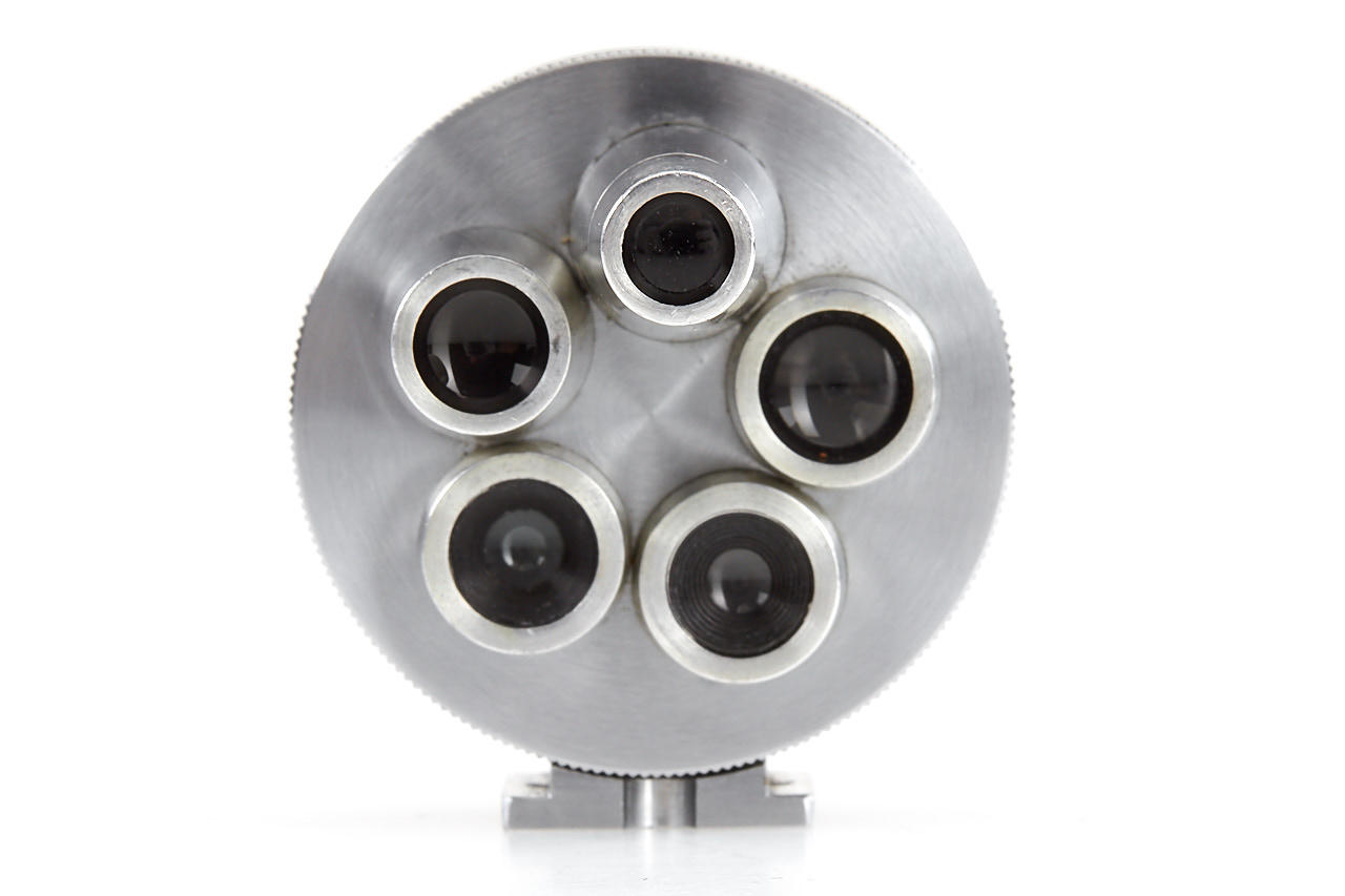 unique prototype Contax finder for 5 focal lengths: 2.5cm, 3.5cm, 5cm, 8.5cm, 13.5cm, with round housing 40mm diameter, optics with slight separation, otherwise fine condition