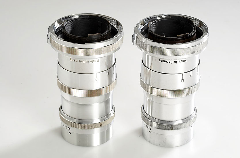 postwar lenses für Contax: Sonnar 4/135mm T no.661289 (in feet), Sonnar 4/135mm T no.891363 (in m), both in good condition with leather cases (2)