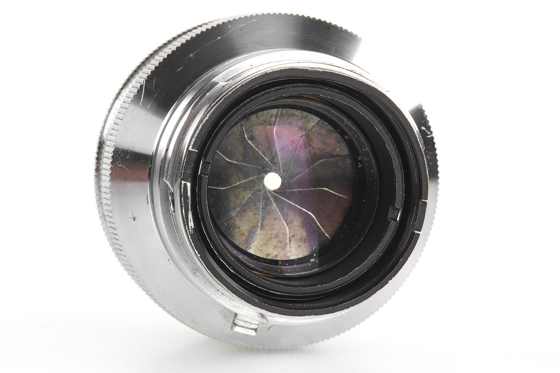 interesting prototype lens in original Contax RF mount, in fine condition (black from rim damaged), very good, clean optics, a Biotar 50mm for Contax never went to serial production