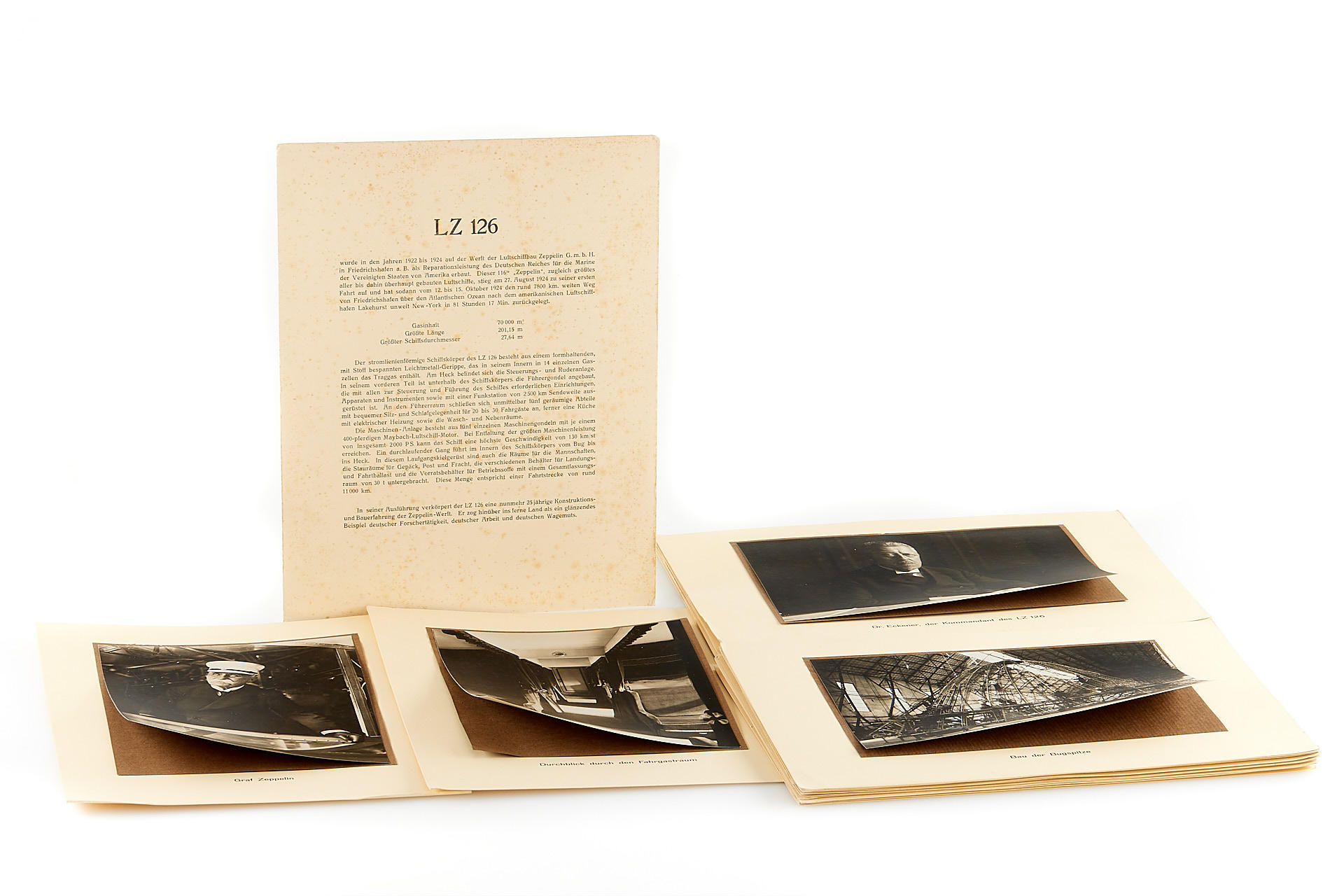 set of 20 original vintage photographs showing the construction process and flights of the famous Zeppelin LZ 126 'USS Los Angeles', in excellent condition, with original folder
