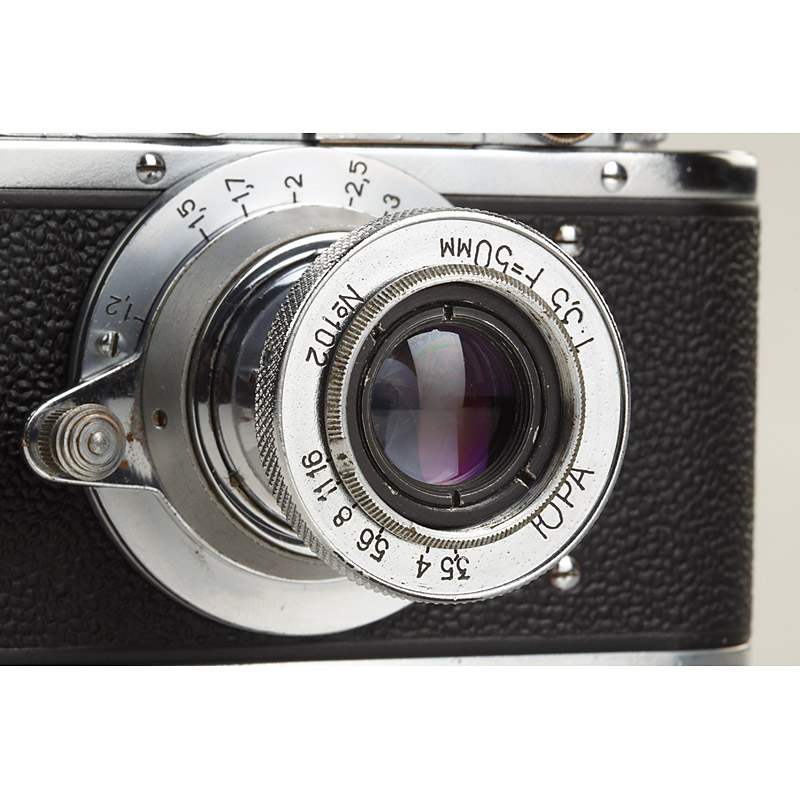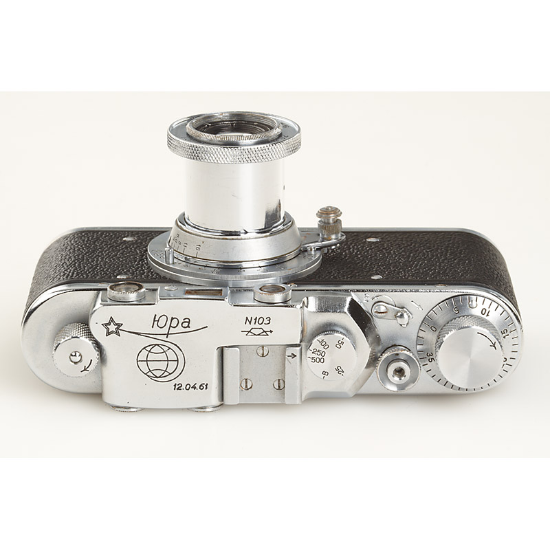 Zorki (counterfeit) for Yuri Gagarin's first trip into the space in near mint condition, Yura 3.5/50mm no.102, matching cap, case