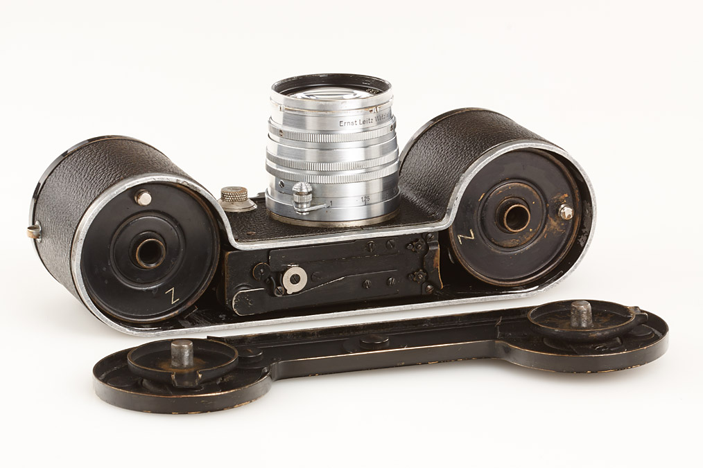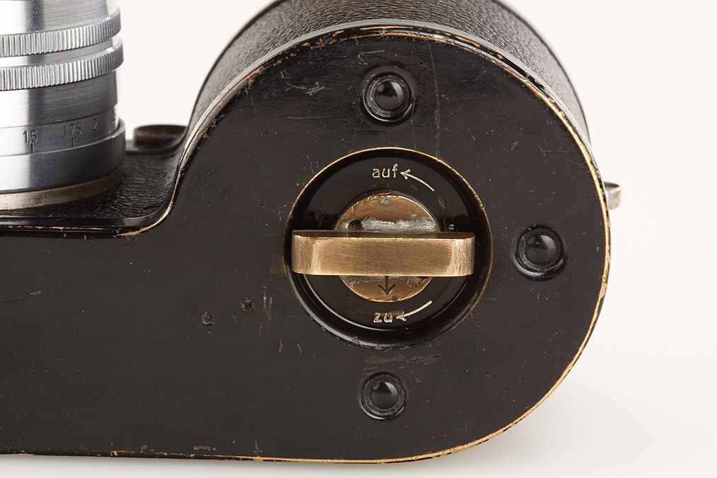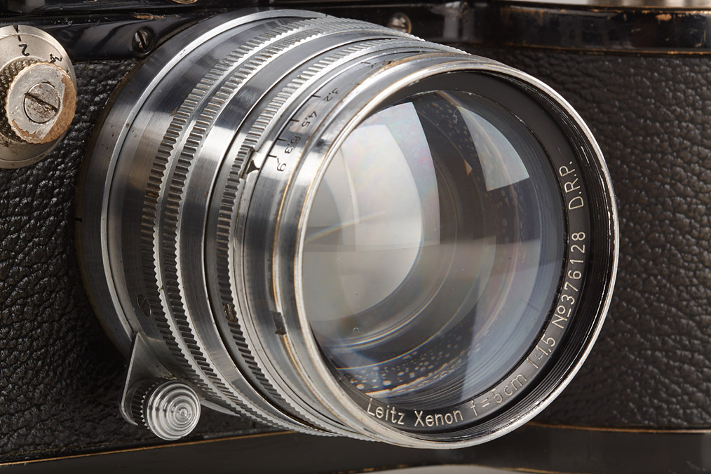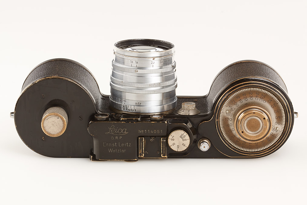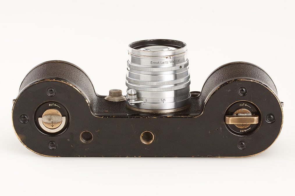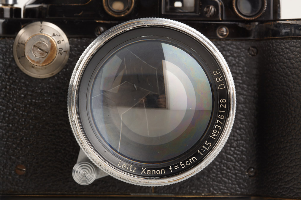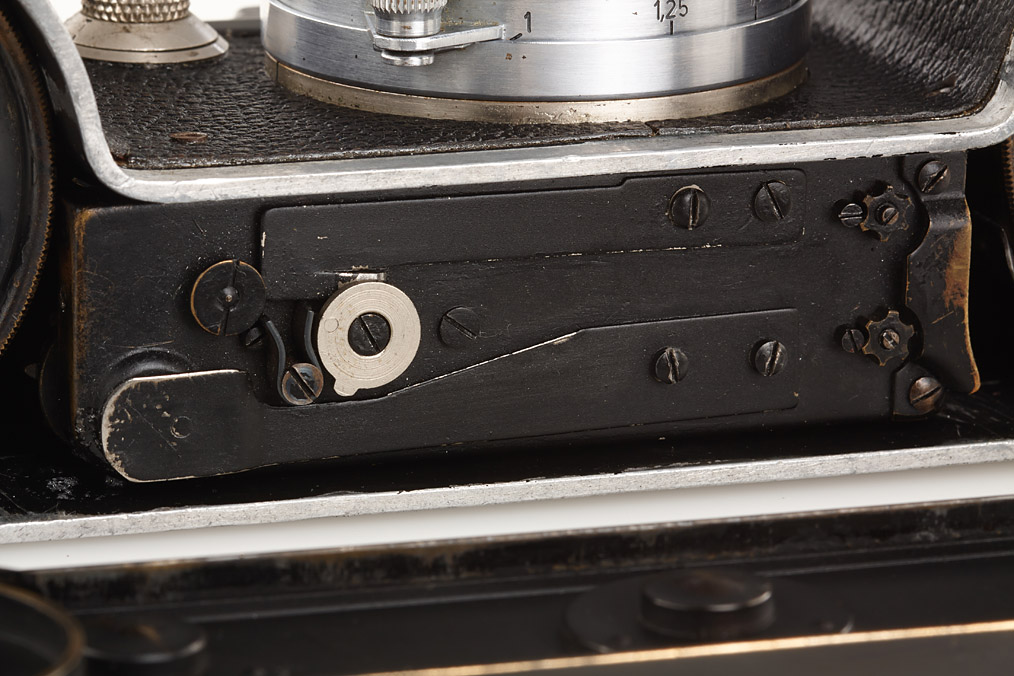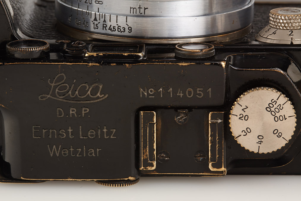 One of 2 Leica 250 prototypes (nos.114051 + 114052, both illustrated in Lager Vol. I p.123). Originally based on a Leica II chassis the camera was converted (according to the Leitz repair book on October 12th, 1936) into a Leica (III) 250FF with slow speeds. These two cameras were the only Leica 250 prototypes produced in 1933 (see 'Hahne list' page 157). Pictures of this camera were used for many years in various Leica publications (C. Emmermann 'Leica Technik'). Since the conversion in 1936, the camera is still in the same never restored and fully working condition. It comes with both cassettes and a chrome Xenon 1.5/5cm no.376128. This is a unique opportunity to acquire one of the most important cameras in Leica's history.