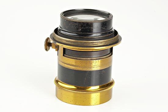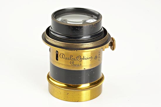 Paris, comprising a brass bound lens with front and rear elements that can be interchanged with six other lens elements engraved 14, 17, 25, 33, 38, and 45 to form lenses of various focal lengths. In original leather case. Ex Spira Collection.
