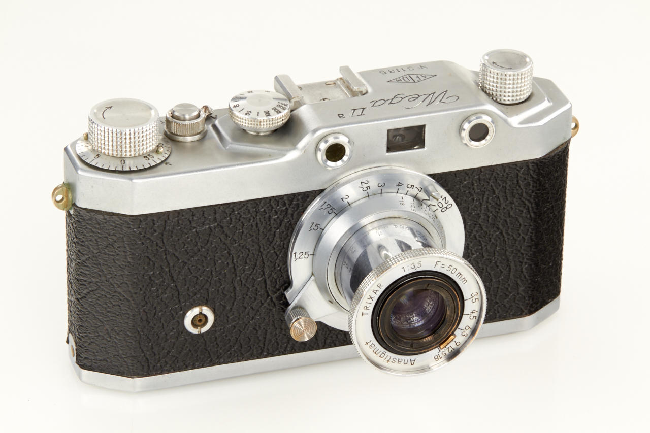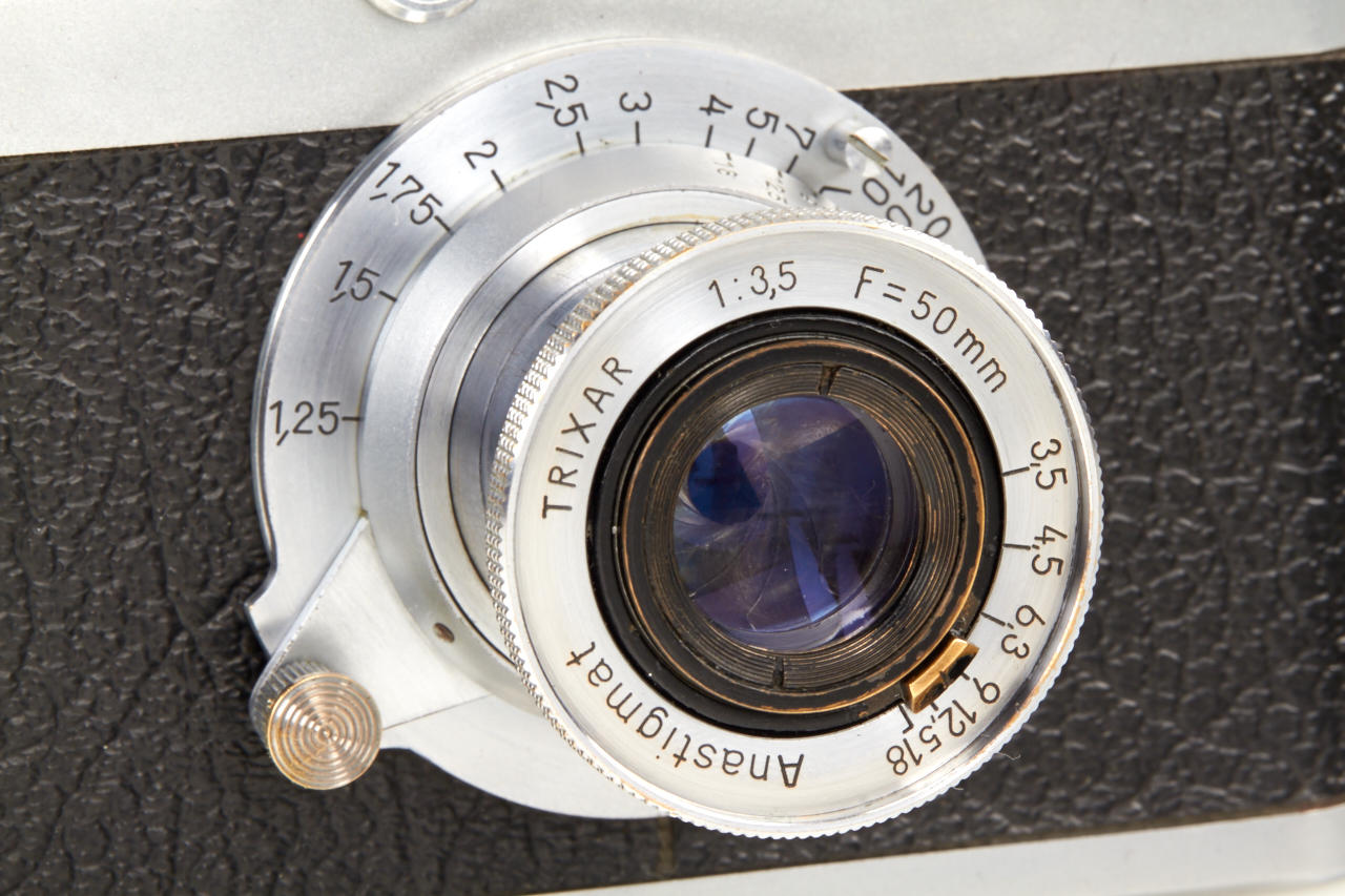 rare Italian Leica copy with rangefinder, with AFIOM logo on top plate, Trixar Anastigmat 3.5/50mm, in good working condition, original case