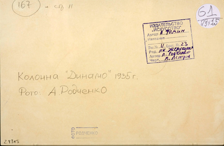 ALEXANDER RODCHENKO (1891–1956) ‘Kolonna Dinamo’, Moscow 1935