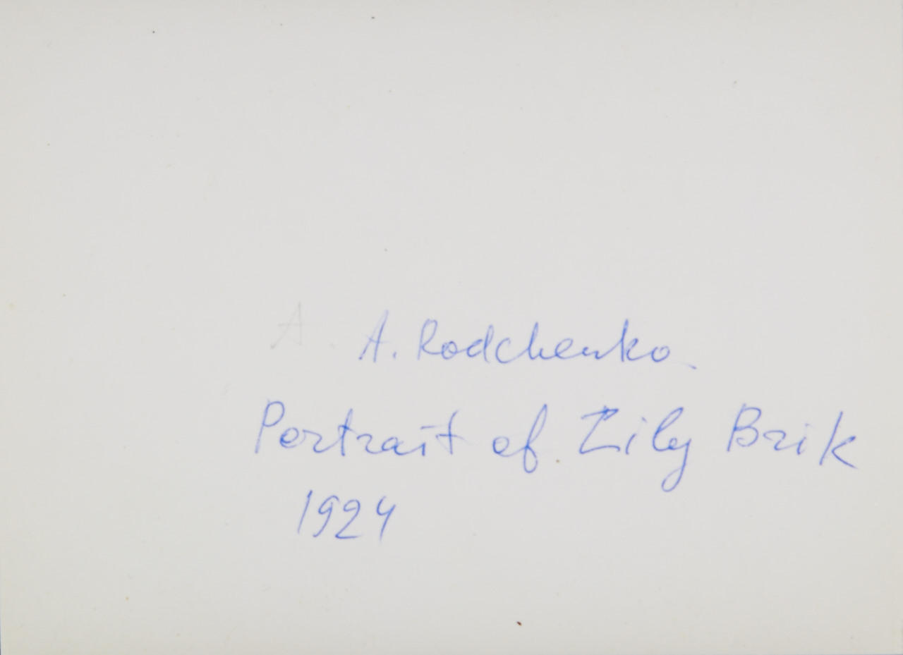 Gelatin silver print, printed in the 1950s / early 1960s 8,3 x 11,4 cm Annotated “A. Rodchenko. Portrait of Lily Brik. 1924” in an unidentified hand in ink on the reverse PROVENANCE Acquired directly from the Estate of Alexander Rodchenko, Howard Schickler Fine Art, New York LITERATURE Alexander Lawrentiev / Olga Sviblova, Alexander Rodchenko. Revolution in Photography, Moscow 2008, p. 47.