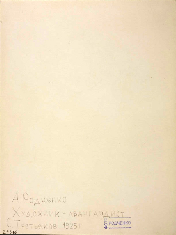 Gelatin silver print, printed before 1938 24 x 17,8 cm Photographer's studio stamp and notations in Russian on the reverse, blacklight tested LITERATURE Alexander Lavrentiev (ed.), Alexander Rodchenko. Photography 1924–1954, Cologne 1995, p. 95; Alexander Rodchenko. Revolution in Photography, Moscow 2008, p. 57. PROVENANCE Borodulin Collection