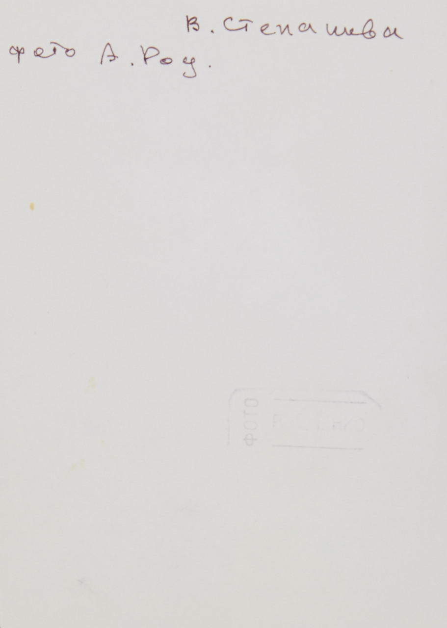 Gelatin silver print, printed in printed in the 1950s / early 1960s 8,9 x 11,9 cm Annotated “V. Stepanova. Photo by A. Rod.” in an unidentified hand in ink on the reverse, photographer’s stamp on the reverse PROVENANCE Acquired directly from the Estate of Alexander Rodchenko, Howard Schickler Fine Art, New York LITERATURE Alexander Rodchenko: Photography 1924–1954, Cologne 1995, p. 99.