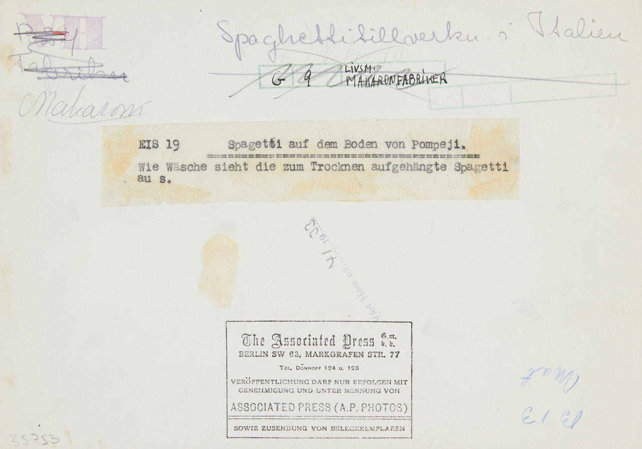 Vintage silver print 16,9 x 24 cm The Associated Press stamp, label with typographic description and handwritten annotations in pencil on the reverse