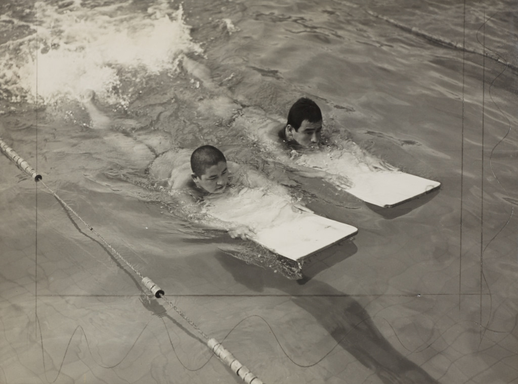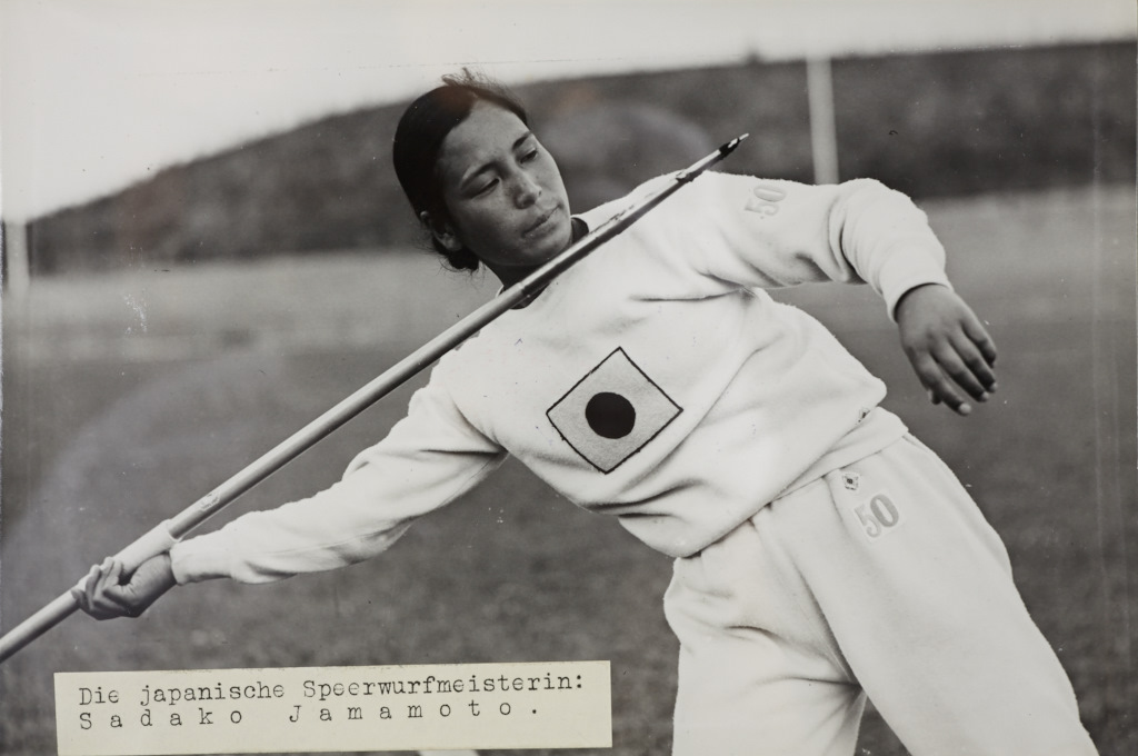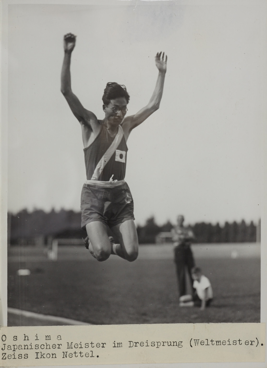 7 Vintage silver prints Sizes vary: 15 x 12 – 17 x 23 cm Some with typographic label on the front, one with “Aufnahme mit Zeiss Ikon Camera” stamp on the reverse, majority with handwritten and typographic annotations on the reverse Japanische Athelten: Oshima - Japanischer Meister im Weitsprung, Die Japanische Speerwurfmeisterin Jamamoto, Japanische Flaggenträger, Japanische Schwimmer beim Training, Olympiaflaggen Japanese athletes: Oshima - Japanese long jump champion, Japanese javenile throw champion Jamamoto, Athletes carrying the Japanese flag, Japanese swimmers at the training, Olympia flags PROVENANCE Zeiss Archive