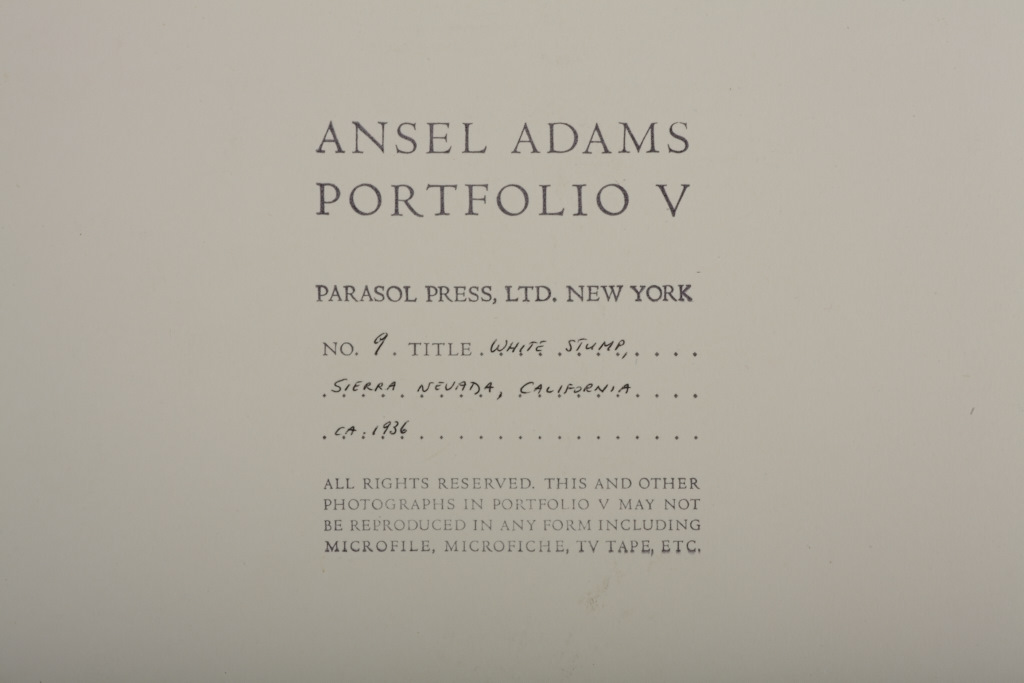 ANSEL ADAMS (1902–1984) ‘Portfolio V, #9, White Stump, Sierra Nevada, California’, c. 1936