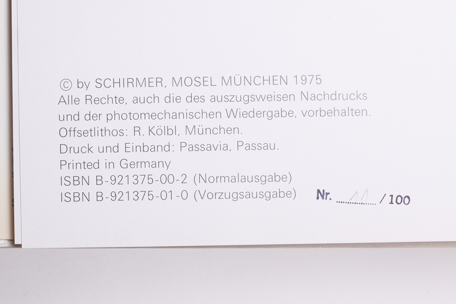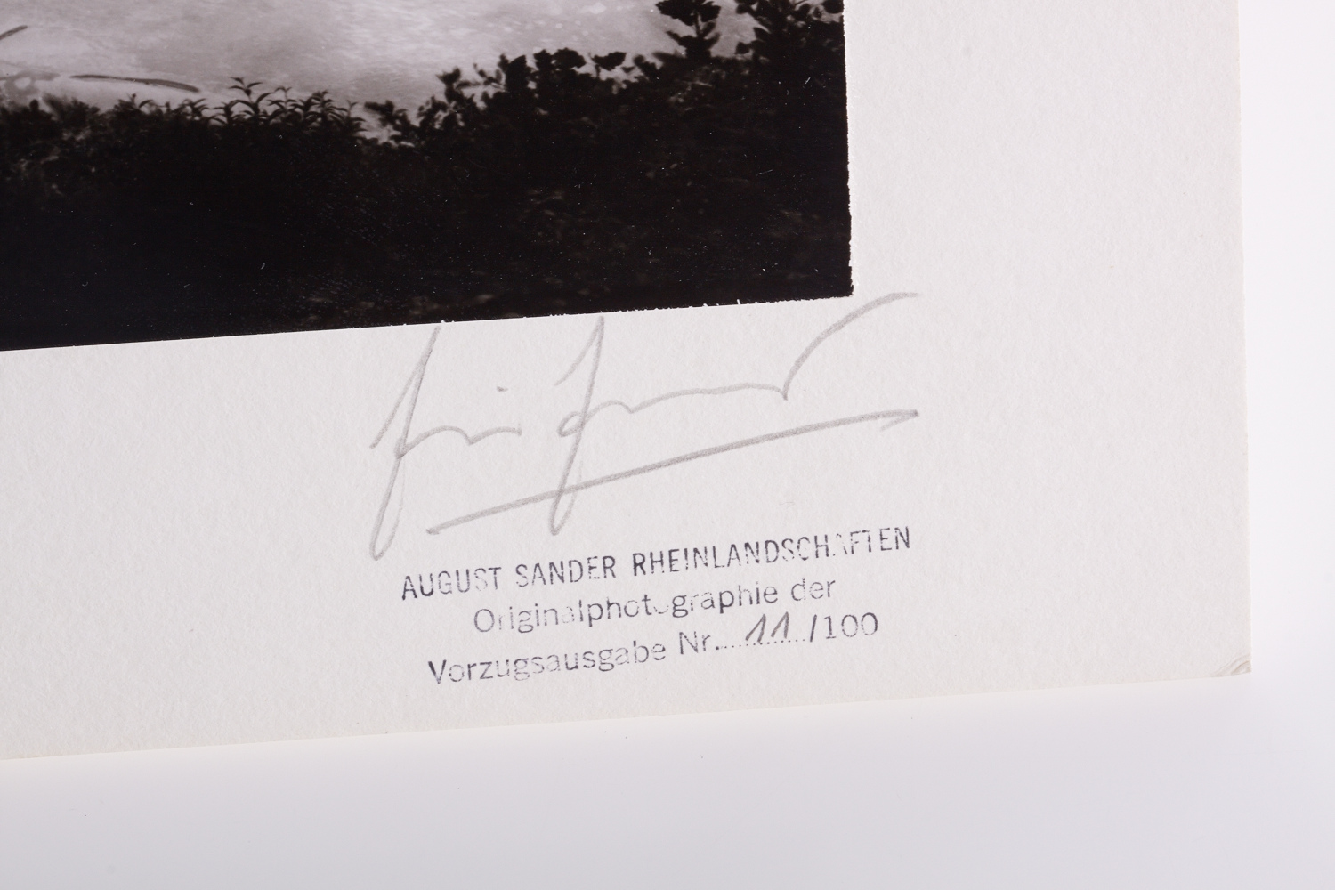 Limited collector's edition of 100 copies, comes with gelatin silver print ‘Blick vom Drachenfels auf die Insel Nonnenwerth und die Eifelberge’ 1930, printed 1975, mounted on cardboard, passe-partout, edition no. 11/100. 17,8 × 23,8 cm (7 x 9.4 in), blindstamp ”Aug. Sander, Köln, Lindenthal", signed by Gunther Sander
