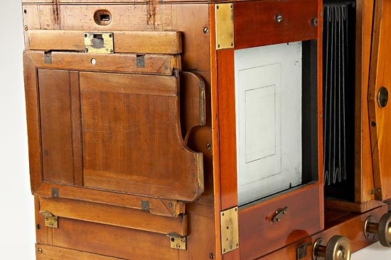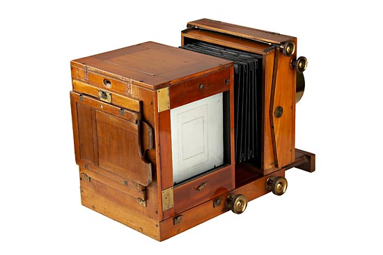 English single-lens-reflex camera for plates 6½ x 8½", focal plane shutter 1/2 to 1/100th sec., With J.H. Dallmeyer 4B f/4 lens no.38917 and a Watson & Sons Premier 15x12" f/5.6 lens. Ex Spira Collection purchased Christie's London, April 25,1974, lot 98. Illustrated in "Camera Antiquarius", by Fea, Torquati & Rogliatti, 1981, page 227. Patented by A.L. Adams and B. Foulkes-Winks (No.19,406, 1912). See British Journal of Photography, Sept. 19, 1913, page 730. Introduced in 1912, advertised in the BJPA 1913 and 1914, then again in 1928 to 1931 and with an improved model with side swing front and later non-resilient mirror frame, from 1932 to 1940. Even though this camera was advertised for many years very few survive today.