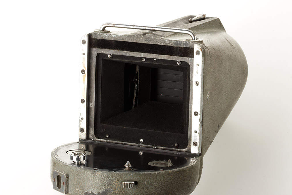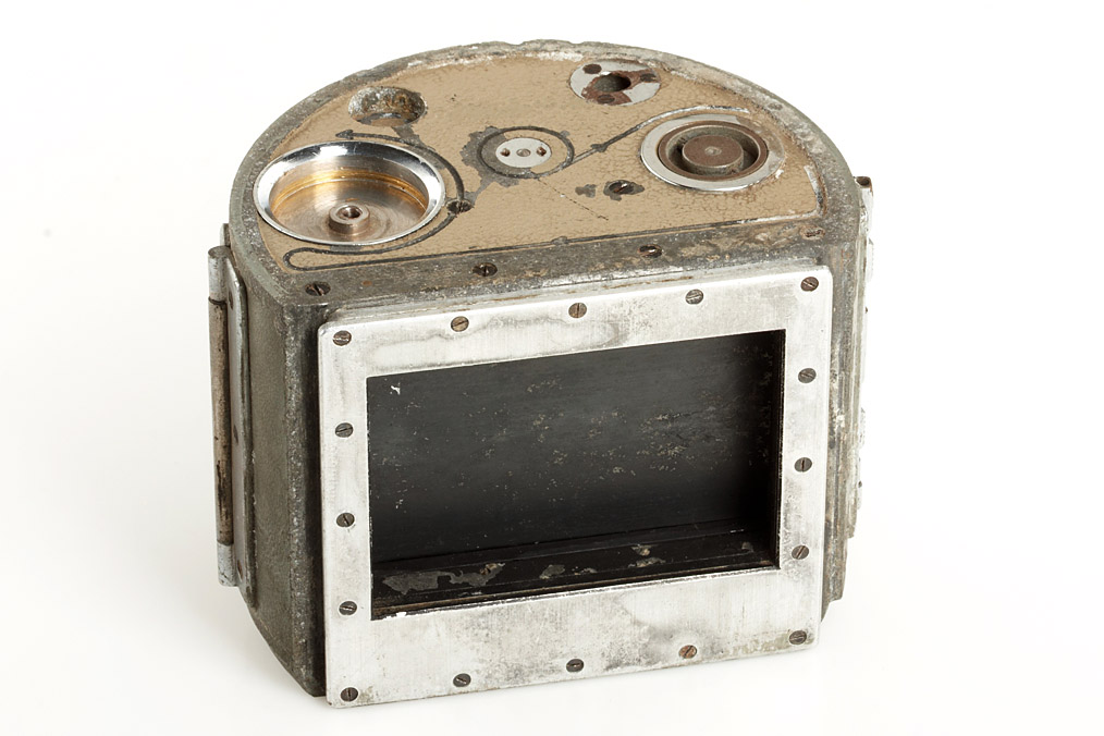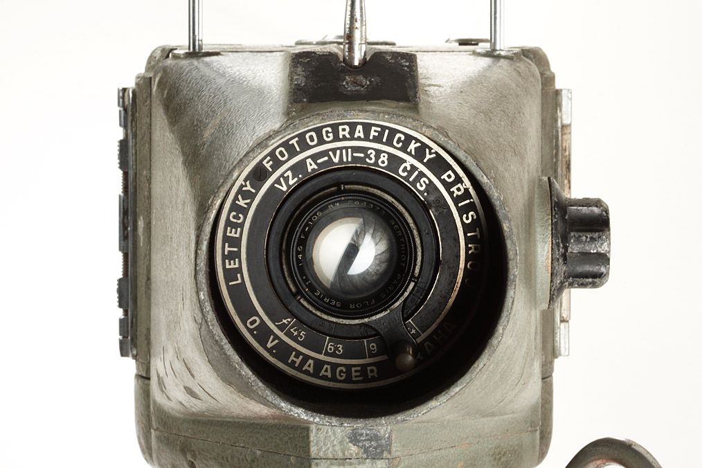 metal cast camera for military use, made in Czechoslovakia during WWII, for 6x9cm exposures on rollfilm, LETECKY FOTOGRAFICKY PRISTROJ O.V.HAAGER PRAHA, with Berthiot Flor Serie I 4.5/105mm no.244373