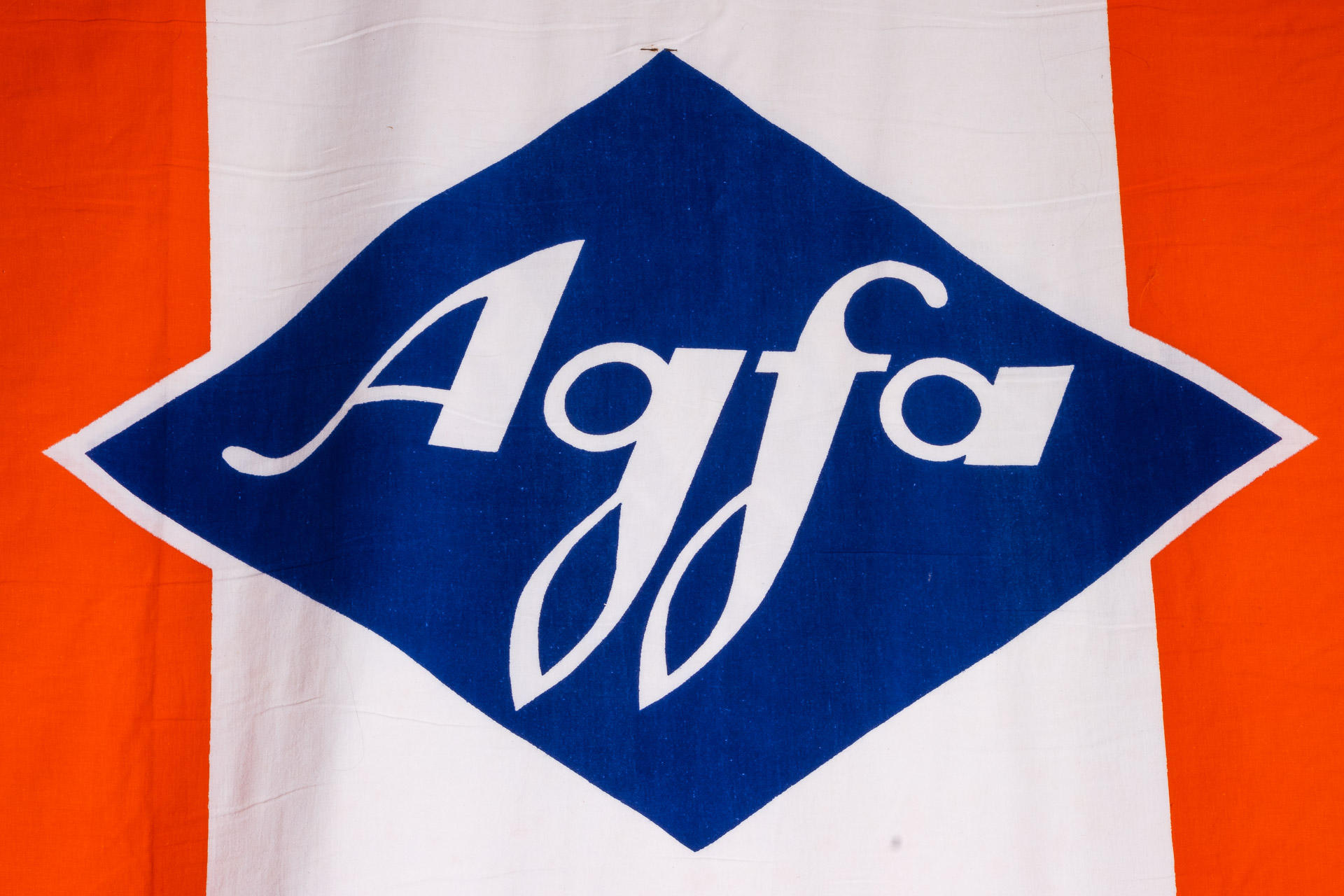 Impressive and beautiful Agfa advertising banner made in Austria, in almost mint condition, 120 x 270cm printed cotton with wooden axle