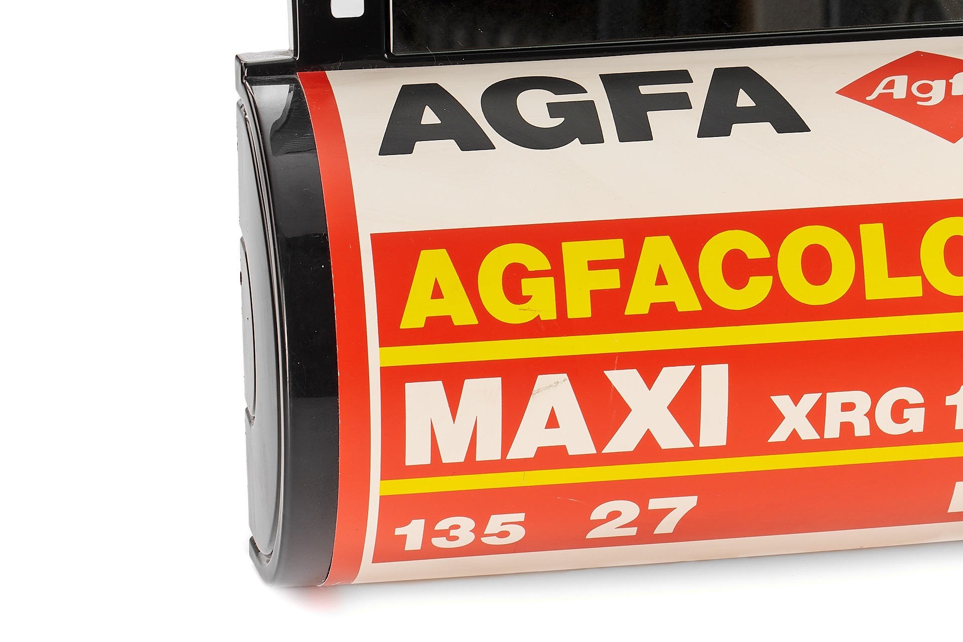 German advertising mirror in the shape of an Agfacolor film spool, in near-mint condition, made of plastic and glass (52.5x32cm)
